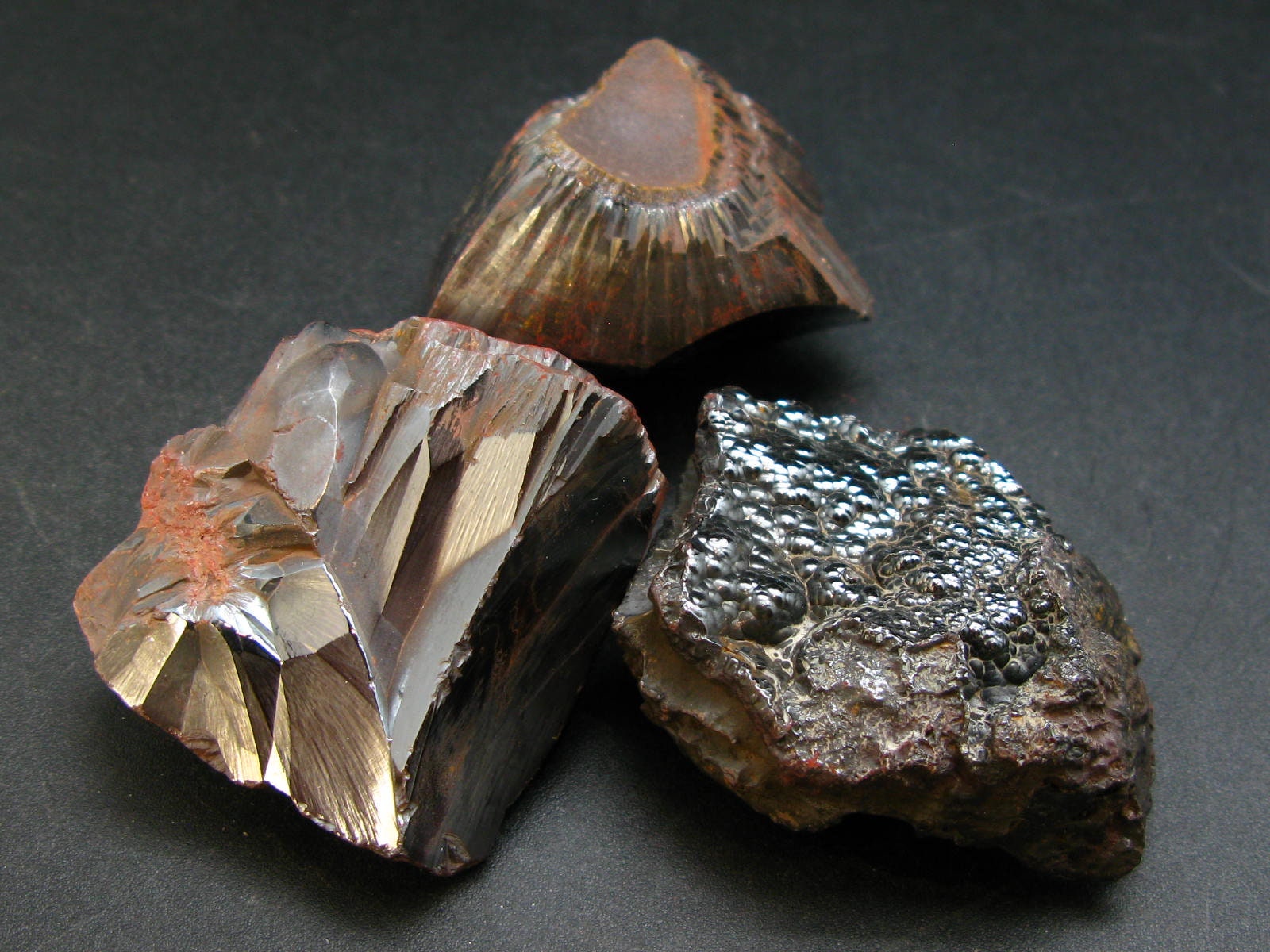 This is lot of 3 rough Shiny Mirror Bright Botryoidal Bubbles Hematite, which is sometimes called "kidney ore" from Morocco. The Hematite is a brilliant silvery black, and the bubble-like hemispheres are mirror-bright and shiny both on top and right down to the bottom of the crevices.