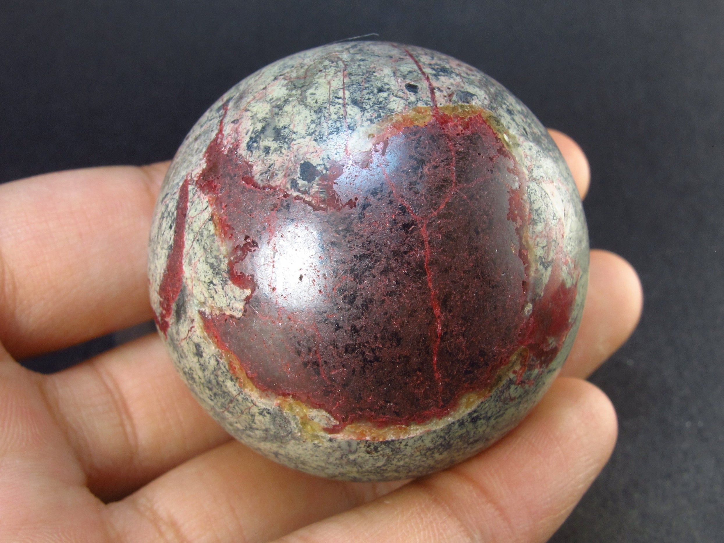 This is a very nice large and rare Cinnabar sphere made from solid Cinnabar from Spain.