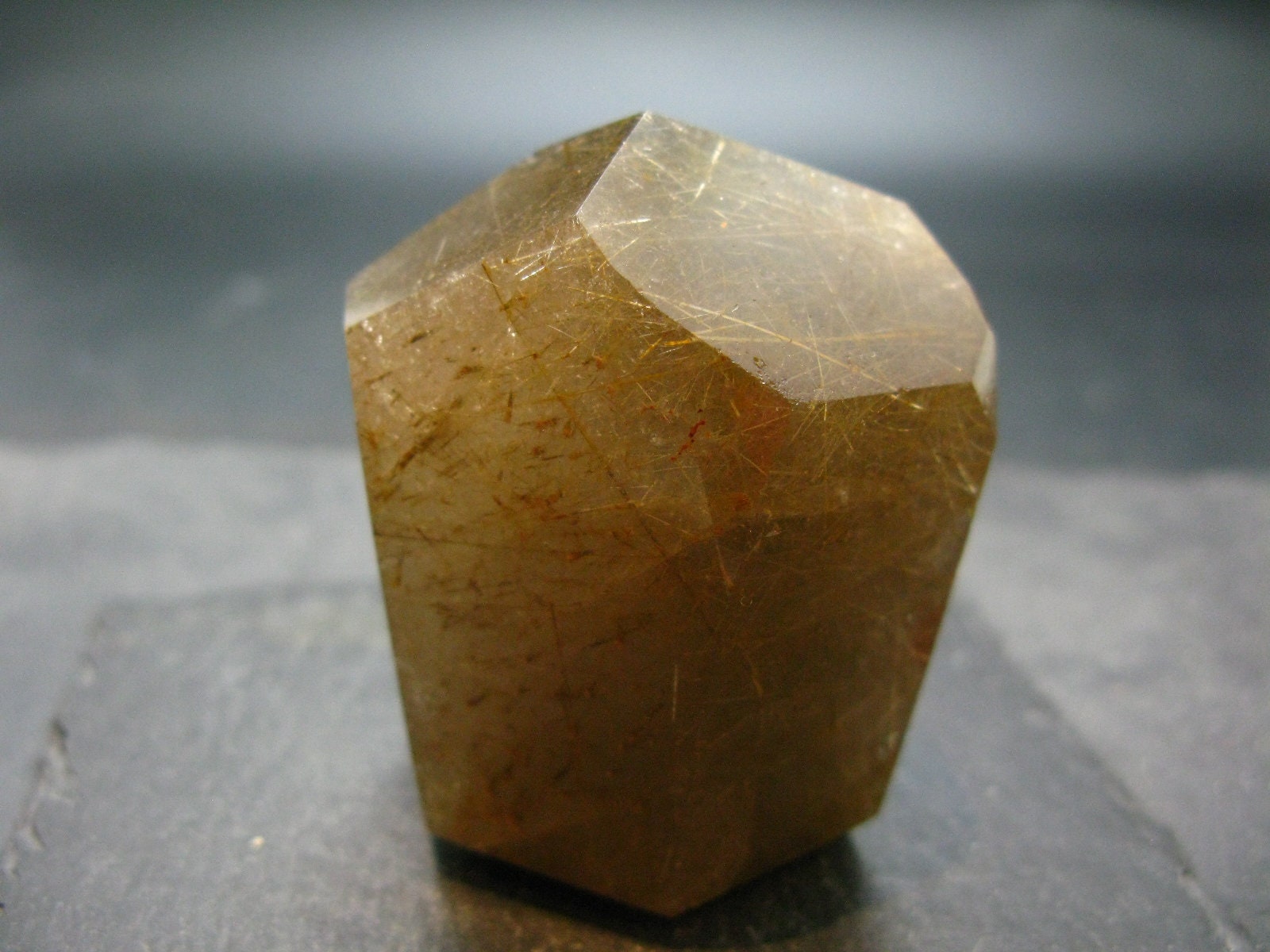 This is a very nice polished Rutilated Quartz (Quartz which contains acicular (needle-like) inclusions of golden rutile) crystal from Brazil.