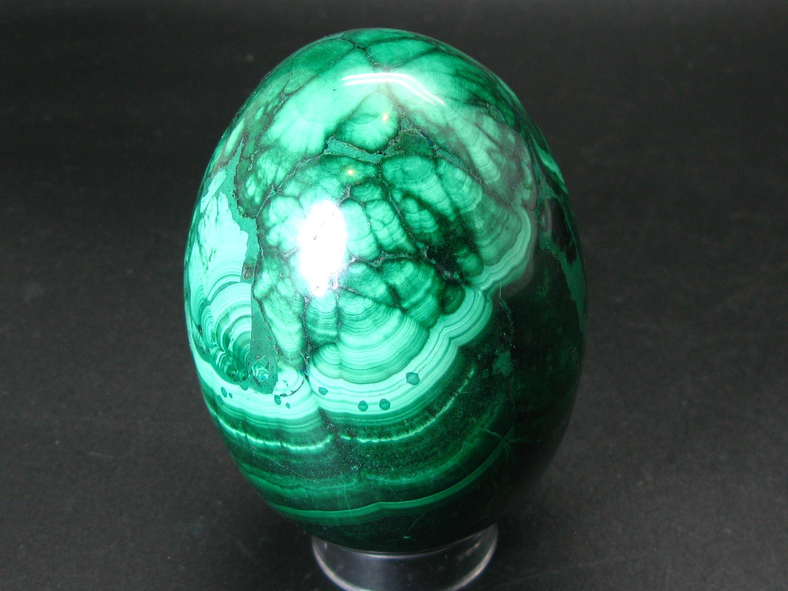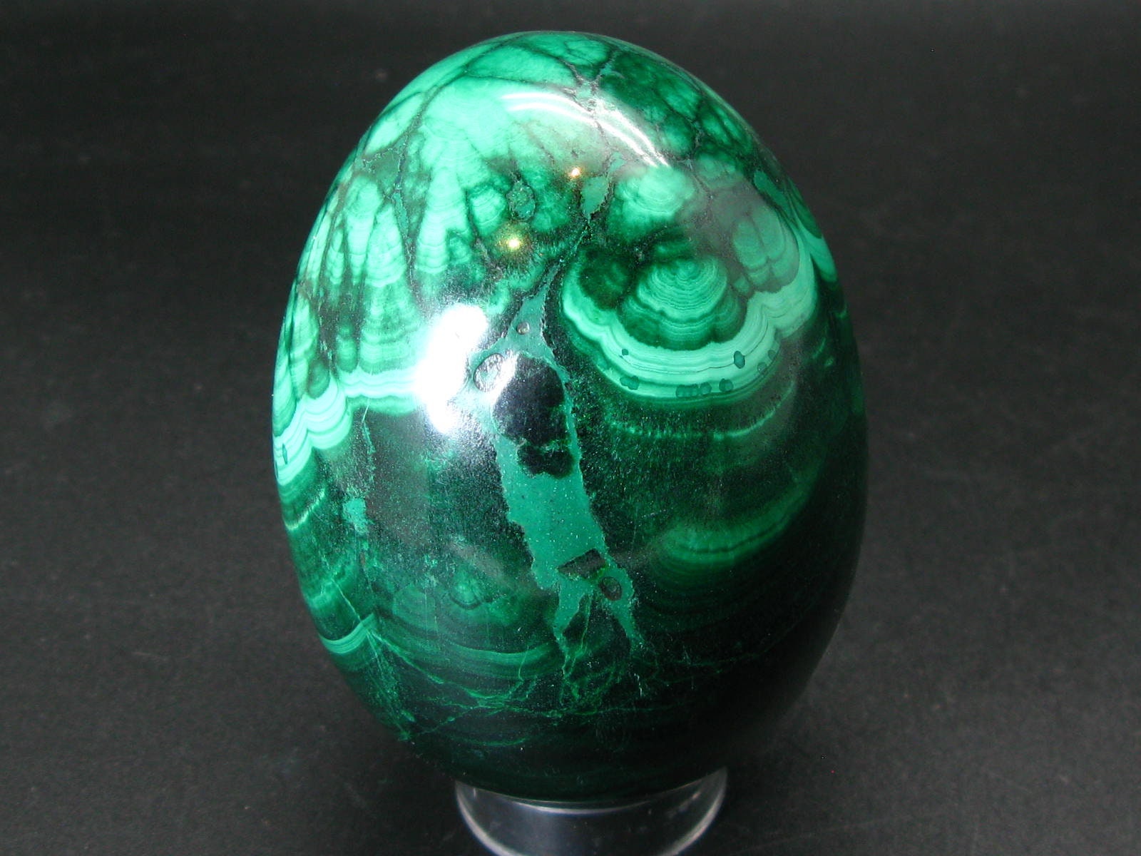 A beautiful handmade dark+light green banding with concentric circles Malachite egg from Congo with a fine polish.