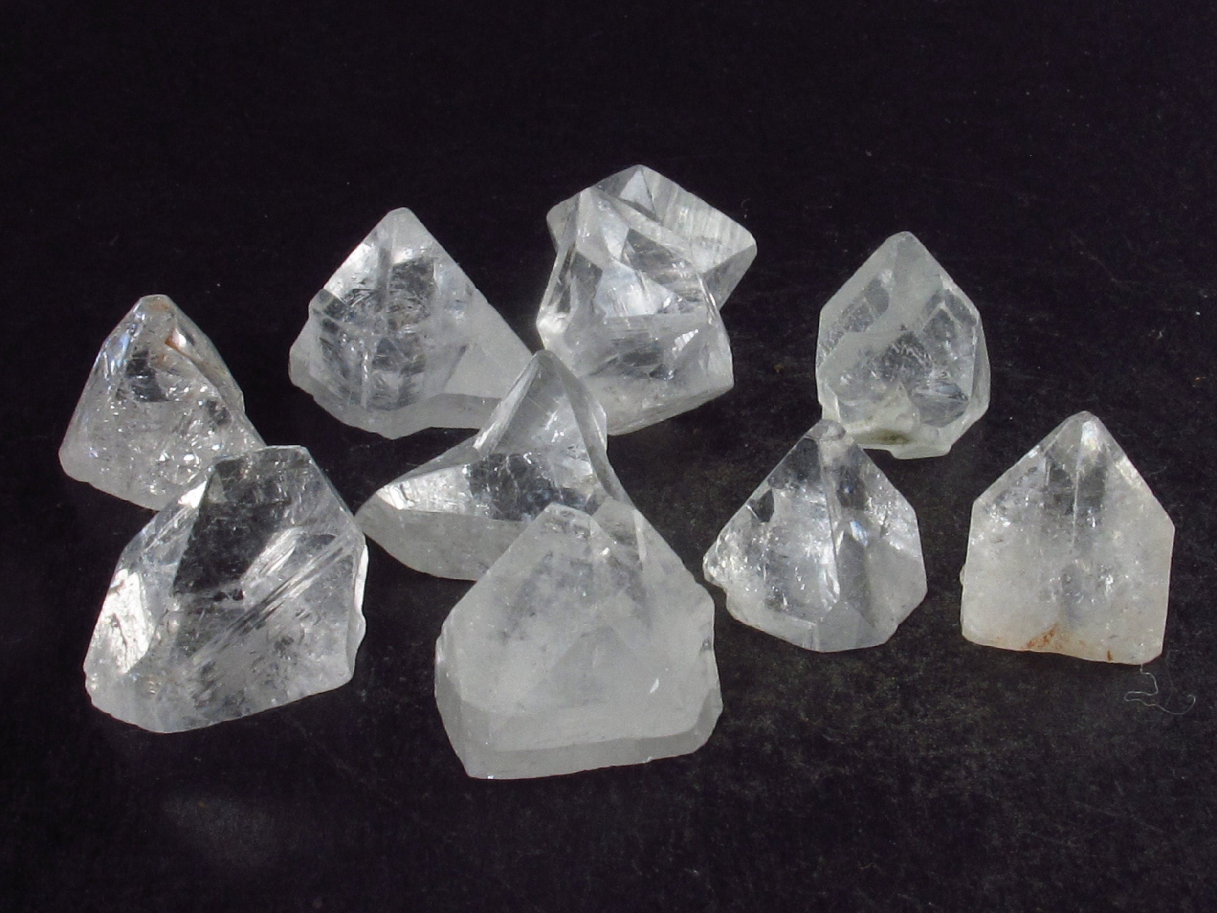 This is a really nice lot of 10 clear Apophylite crystals from India in perfect condition.