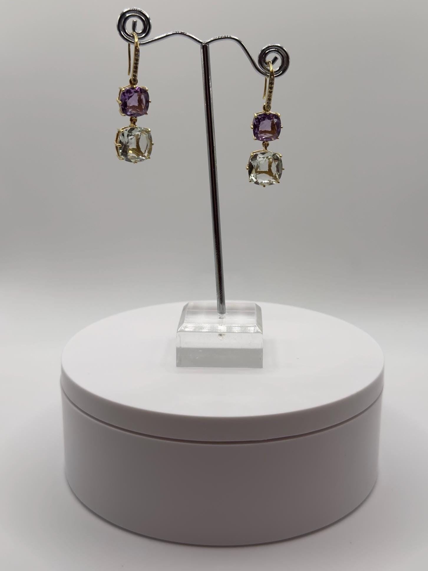 Amethyst & Green Amethyst/ Prasiolite Earrings – Double Gem Drop in Gold Plated Design - Weight 8.79 Grams