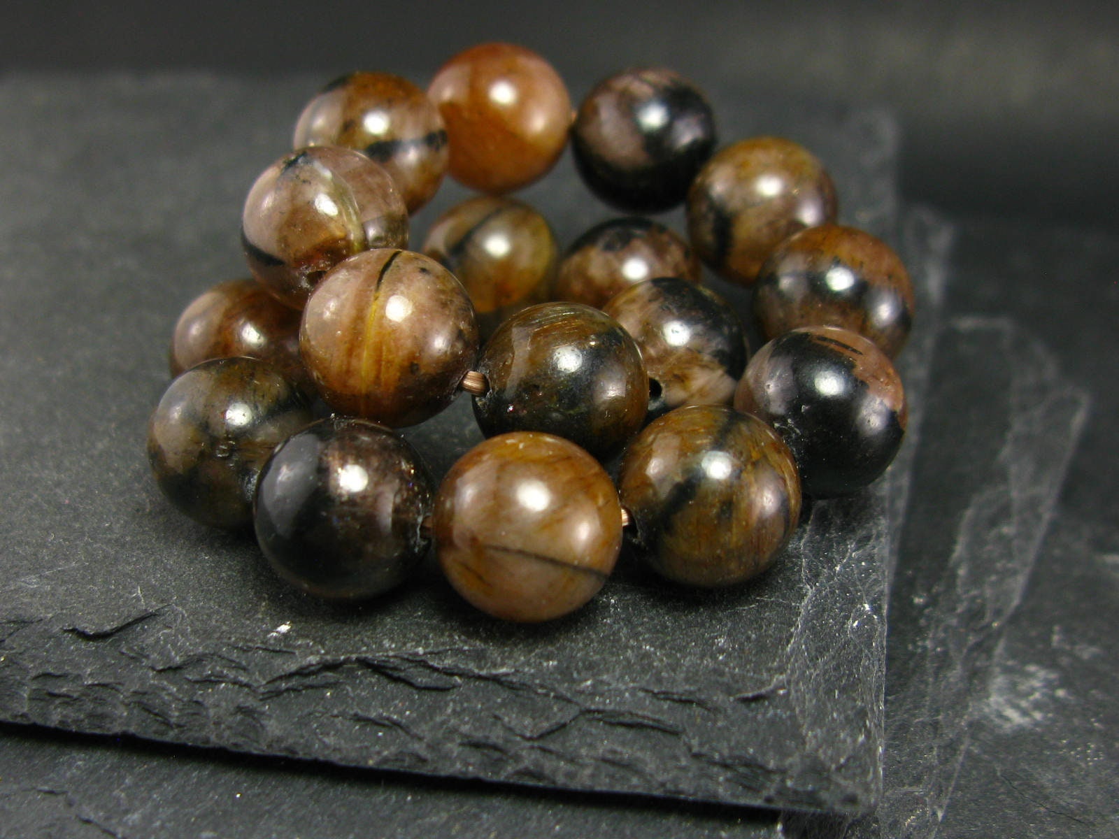 Andalusite Chiastolite Genuine Bracelet ~ 7 Inches ~ 10mm Round Beads