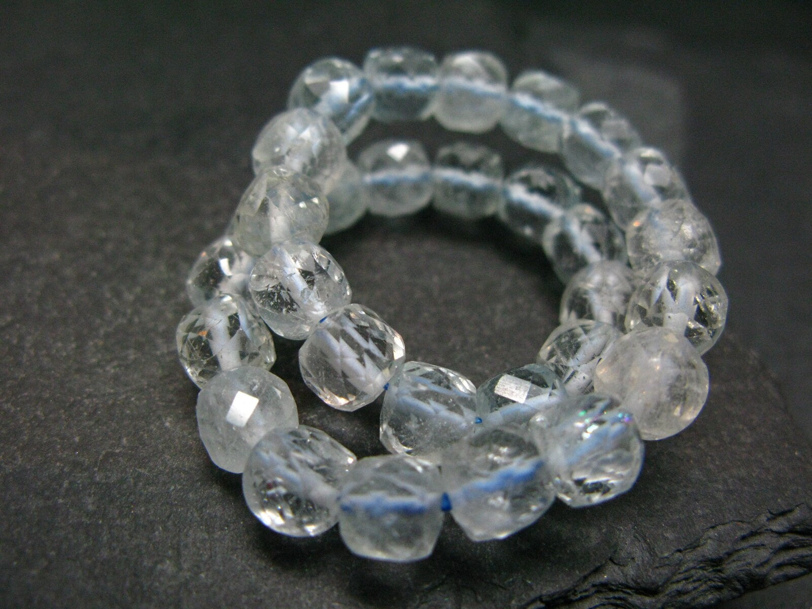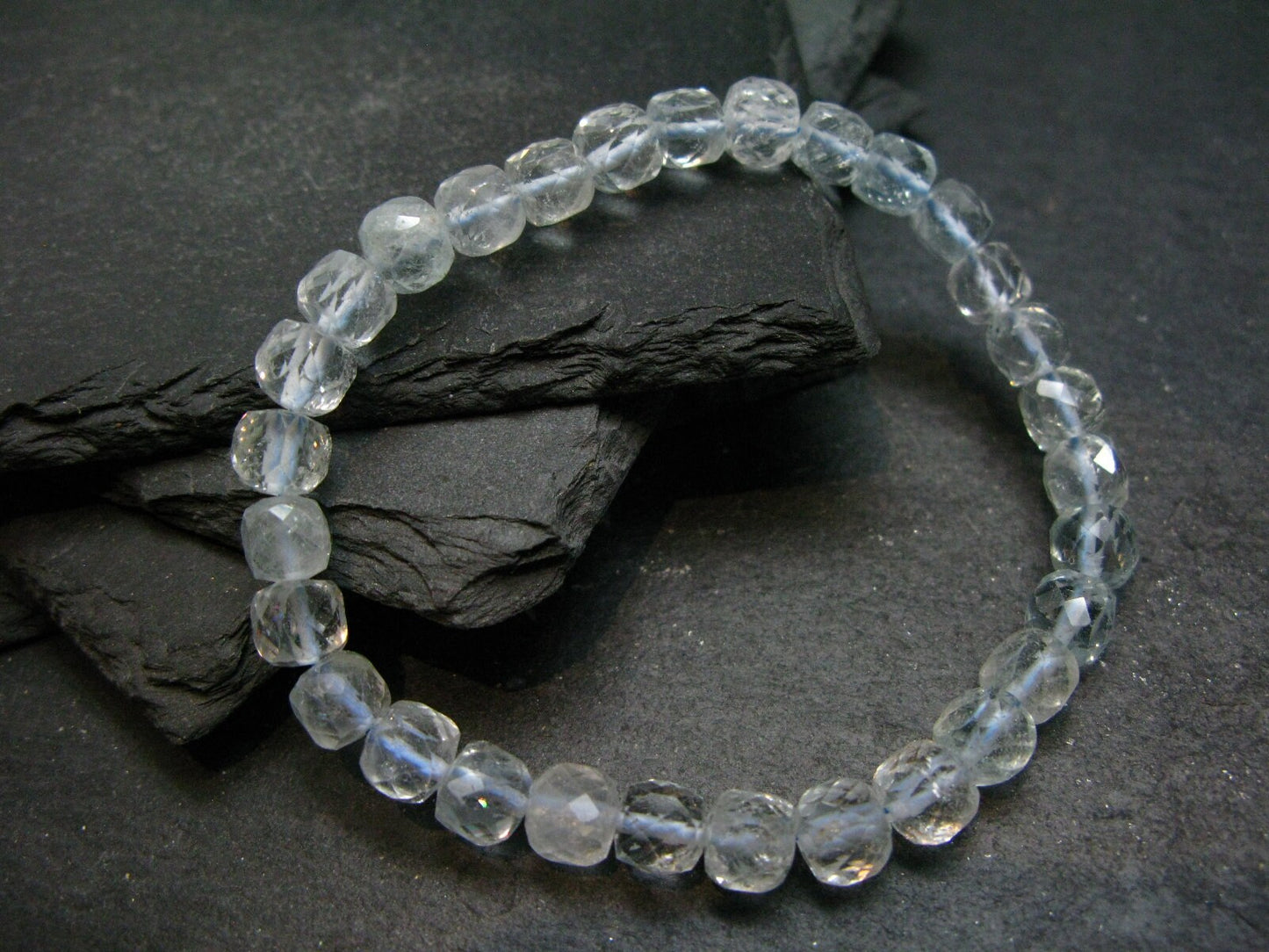 Aquamarine Genuine Bracelet ~ 7 Inches ~ 6mm Squared Facetted Beads