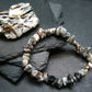 The beads are tumbled and strung on a top quality elastic. They measures 6-10mm in diameter. We make all the bracelets ourselves, here in Canada.