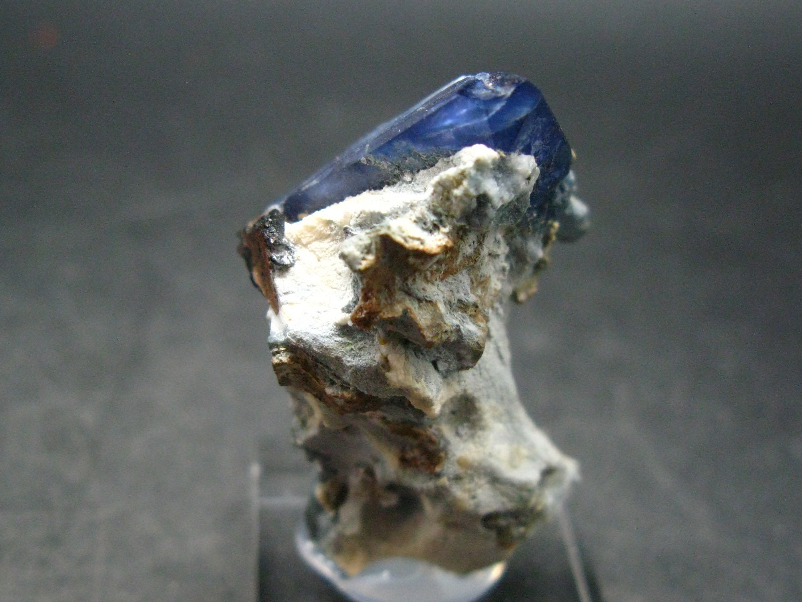 This is a very nice gem-quality Benitoite crystals along with Neptunites on a white Natrolite matrix. The Benitoite is 2.4cm in length, very large for this rare mineral. They are in great shape. There are also few small Neptunites.