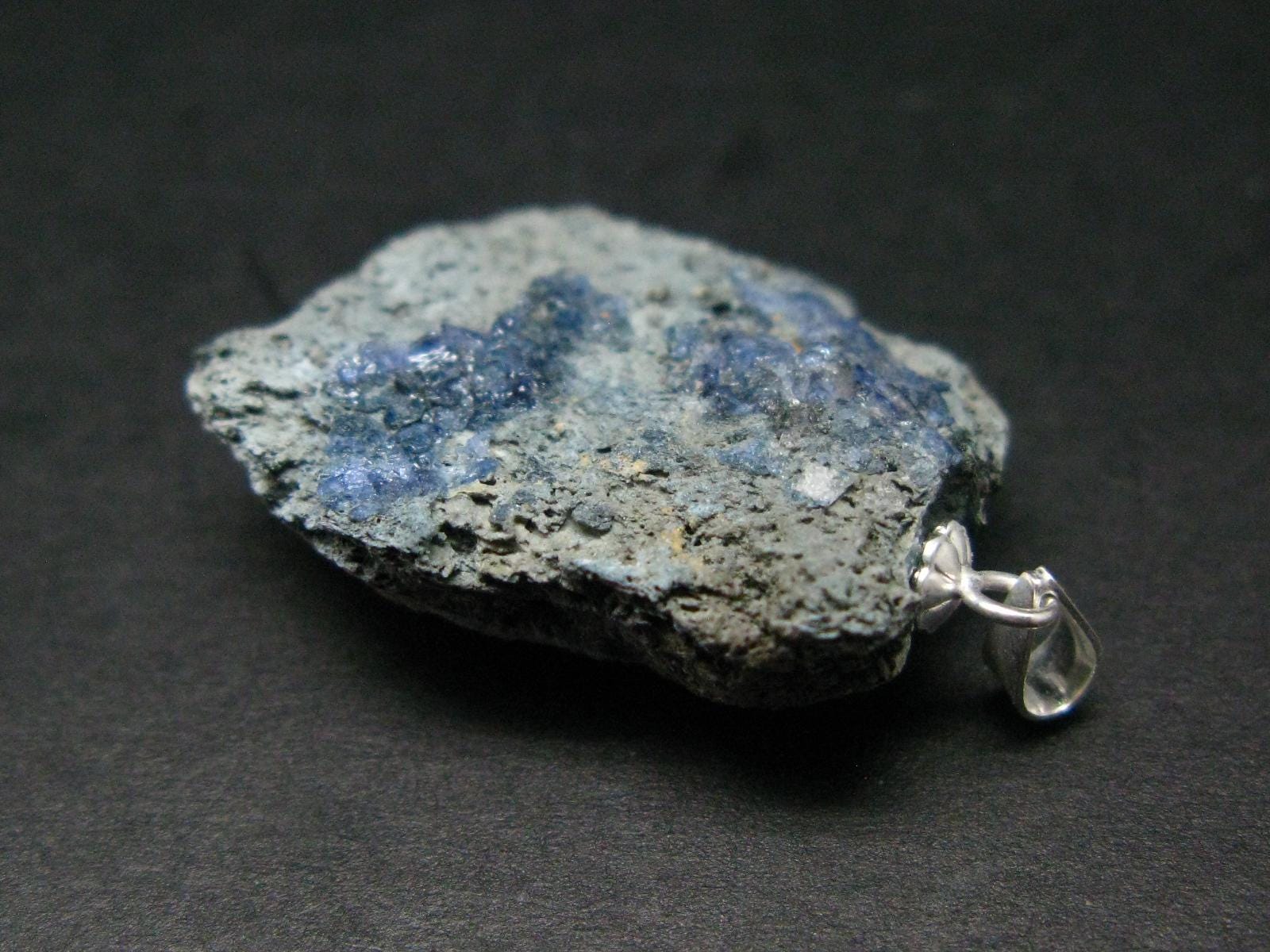 Benitoite Cluster Silver Pendant From California - 1.4" - 3.87 Grams