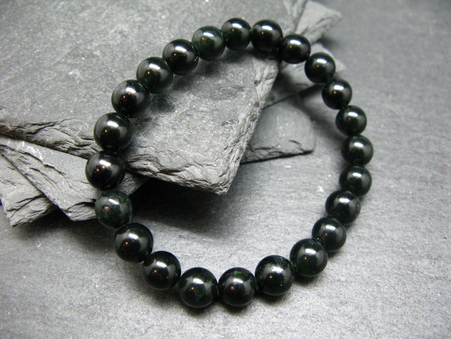 Black Jade Nephrite Genuine Bracelet ~ 7 Inches ~ 8mm Round Beads