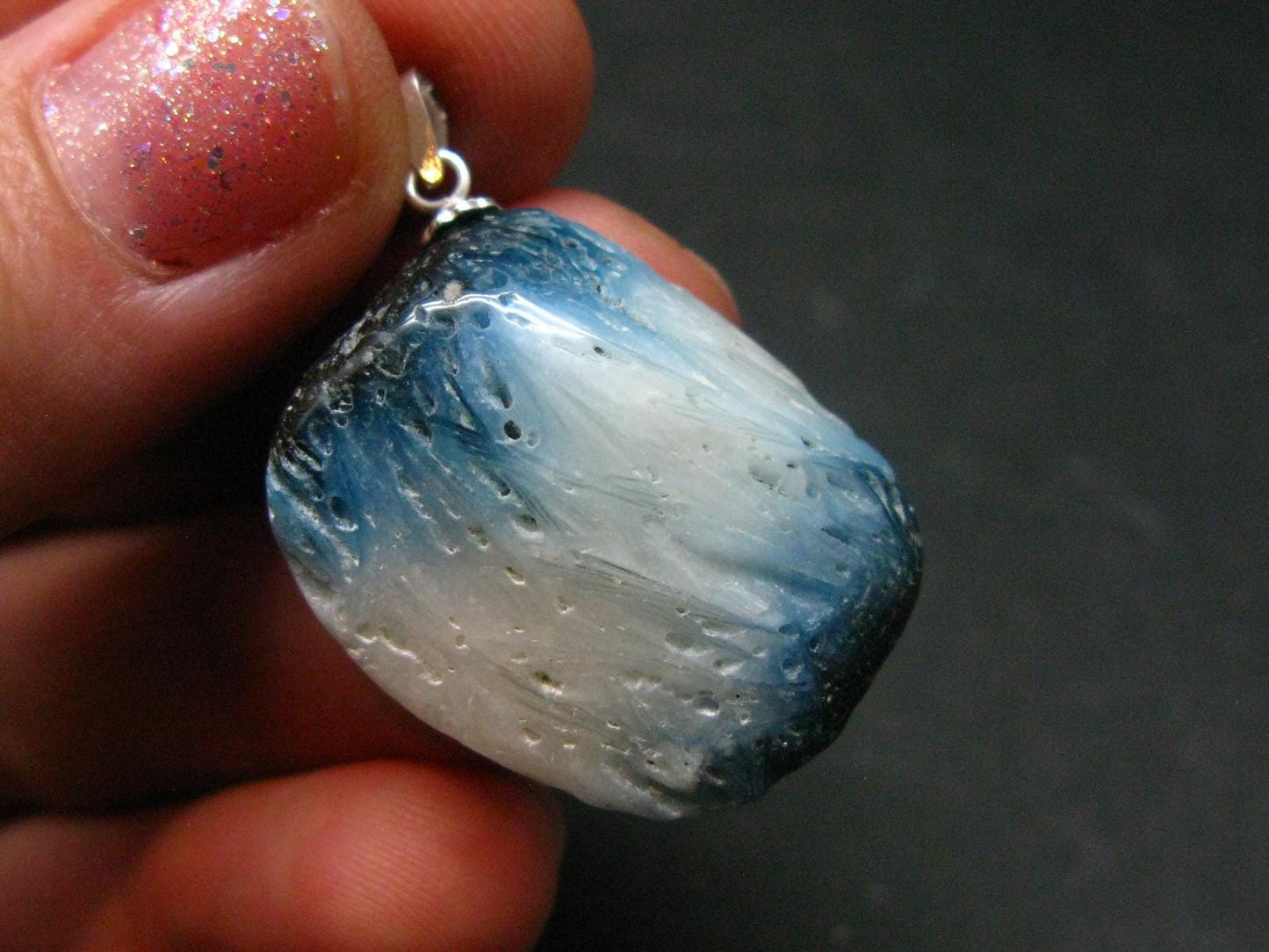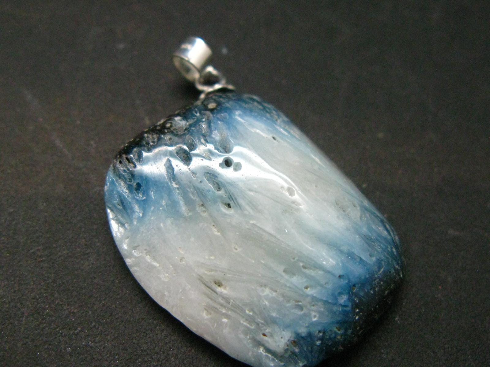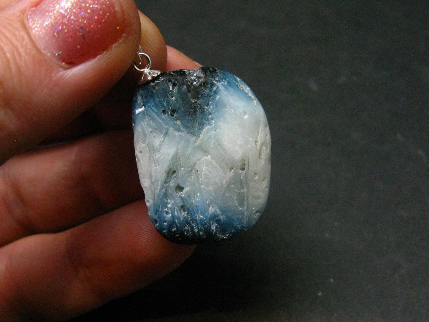 Blue Ice Glacierite Silver Pendant from Indonesia - 1.3" - 6.35 Grams
