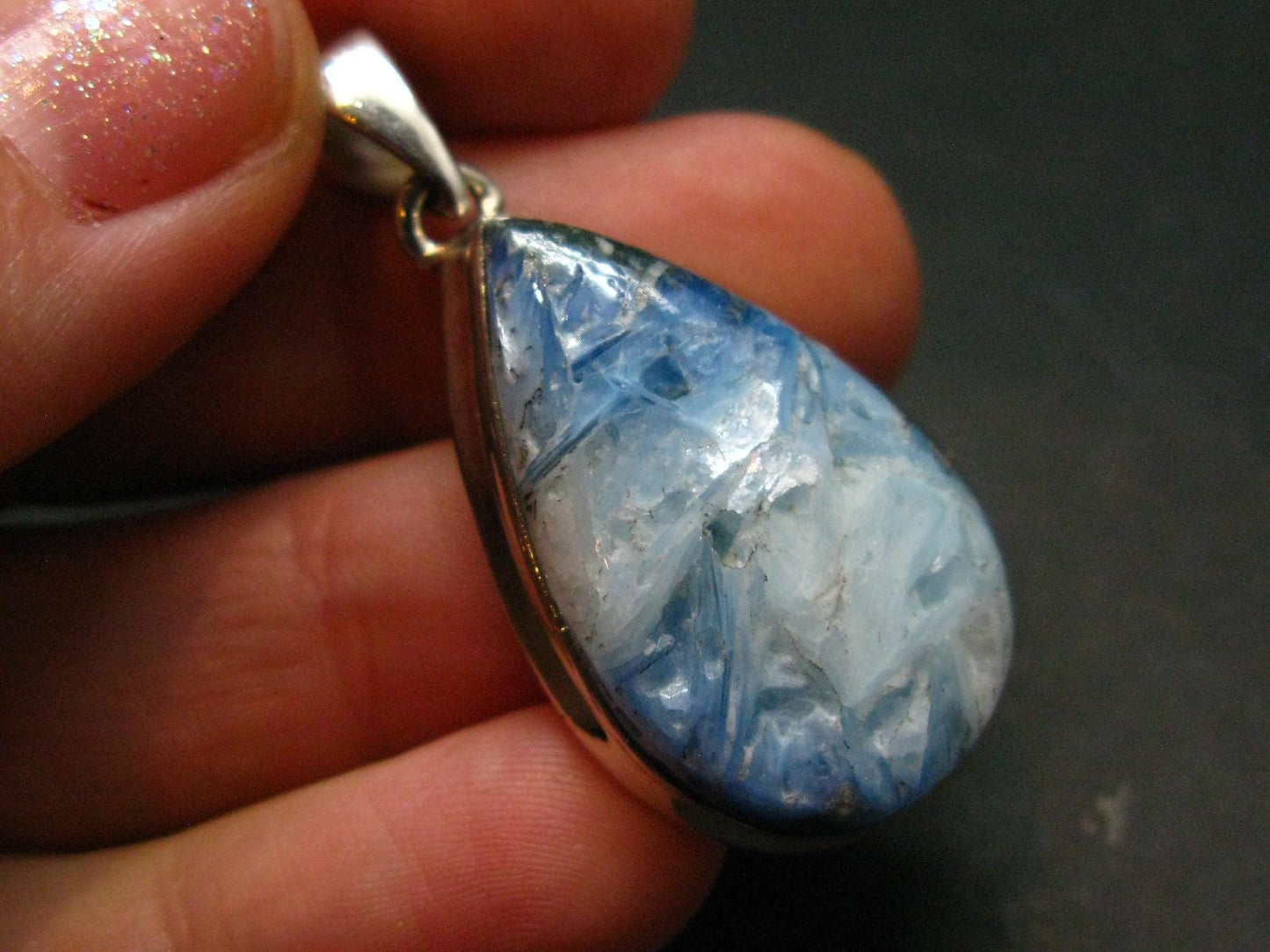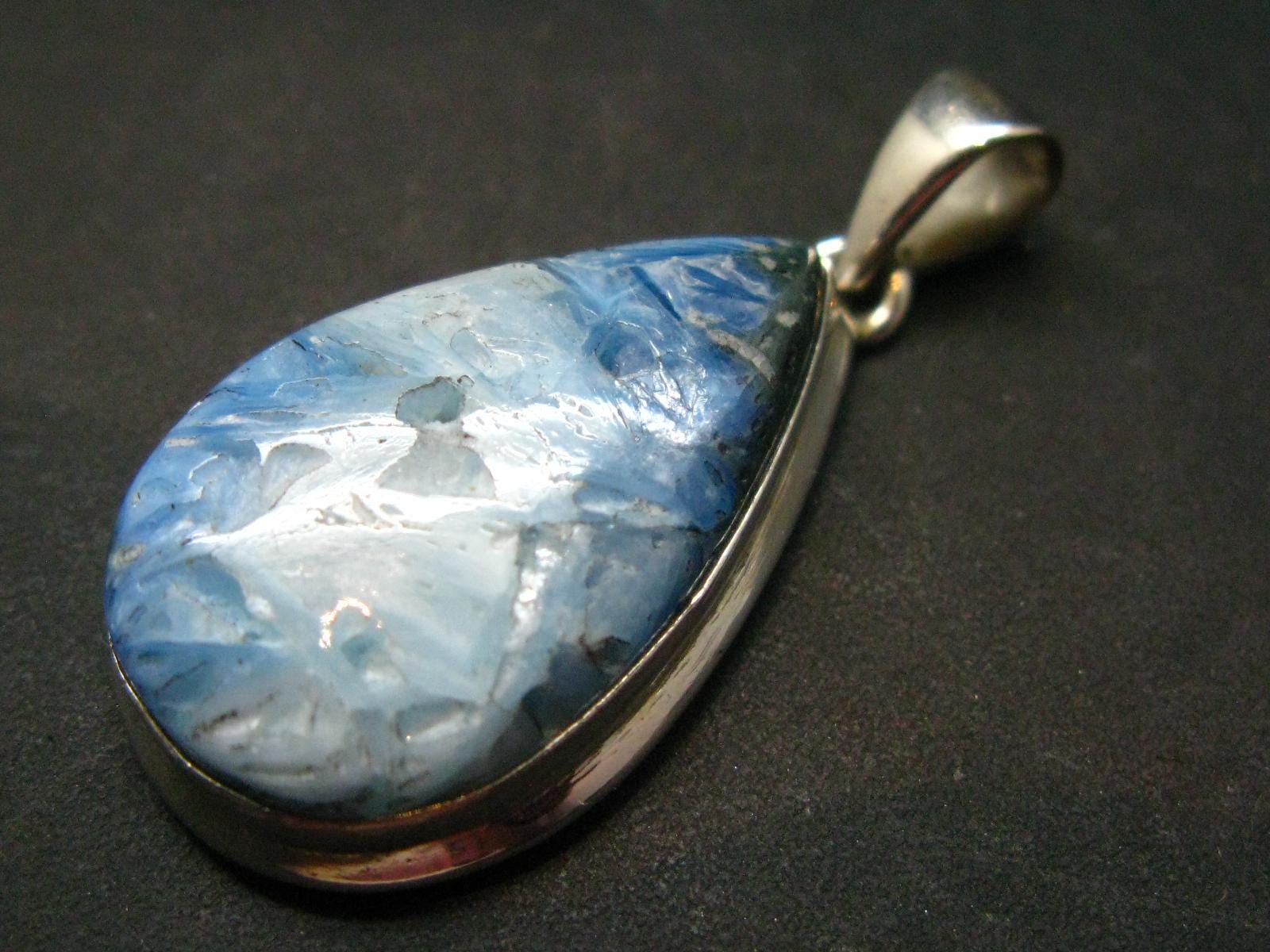 Blue Ice Glacierite Silver Pendant from Indonesia - 1.5" - 8.32 Grams