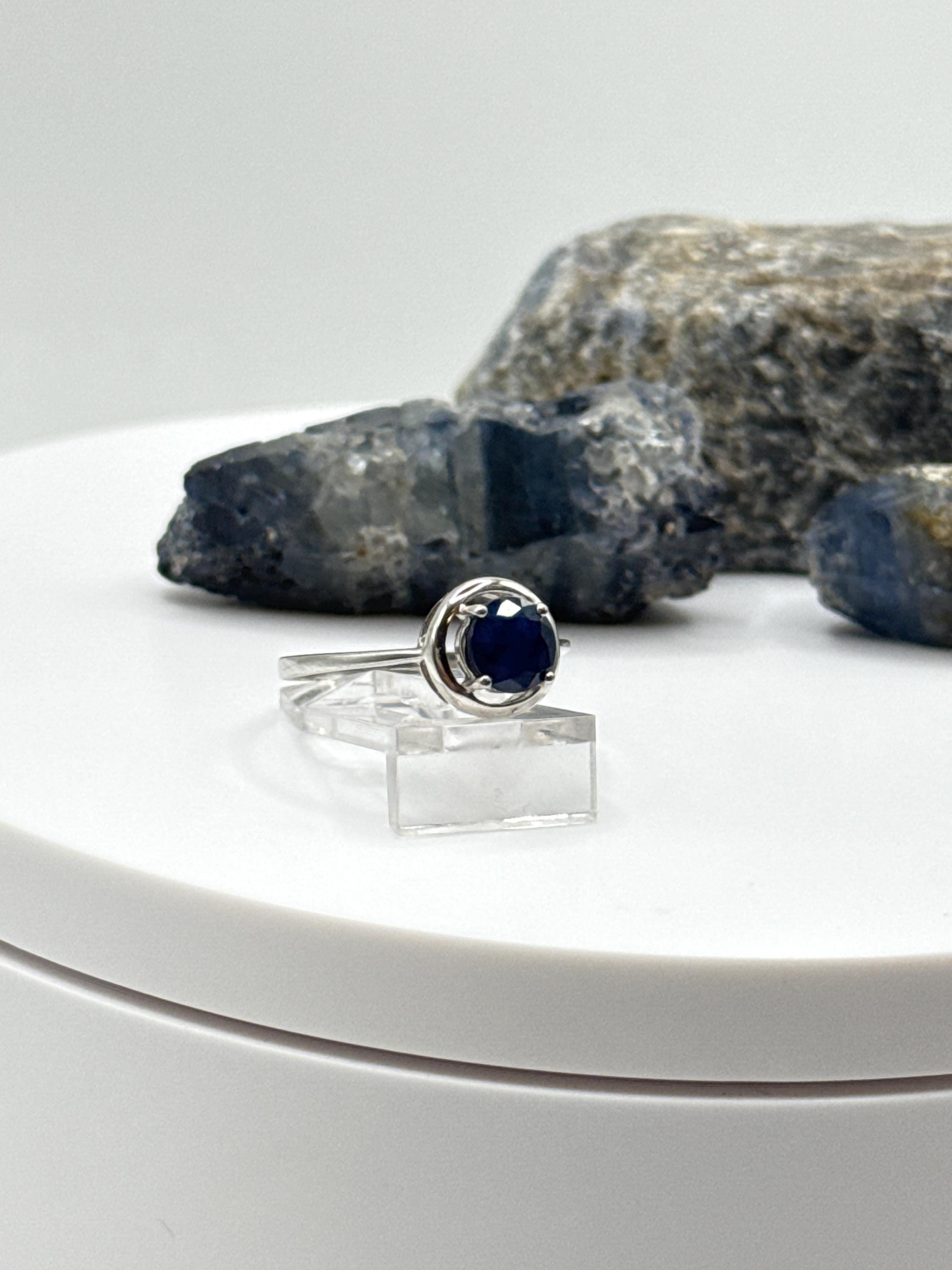 This sapphire bezel ring features a faceted deep blue sapphire securely set in a sleek sterling silver band, offering a clean and modern minimalist design. Blue sapphire is treasured as a stone of wisdom, clarity, and protection, while also being the traditional September birthstone, making this ring both meaningful and timeless. Perfect as natural gemstone jewelry for daily wear, stacking with other rings, or as a unique birthday or anniversary gift, this sapphire bezel ring adds elegance and understated beauty to any collection.