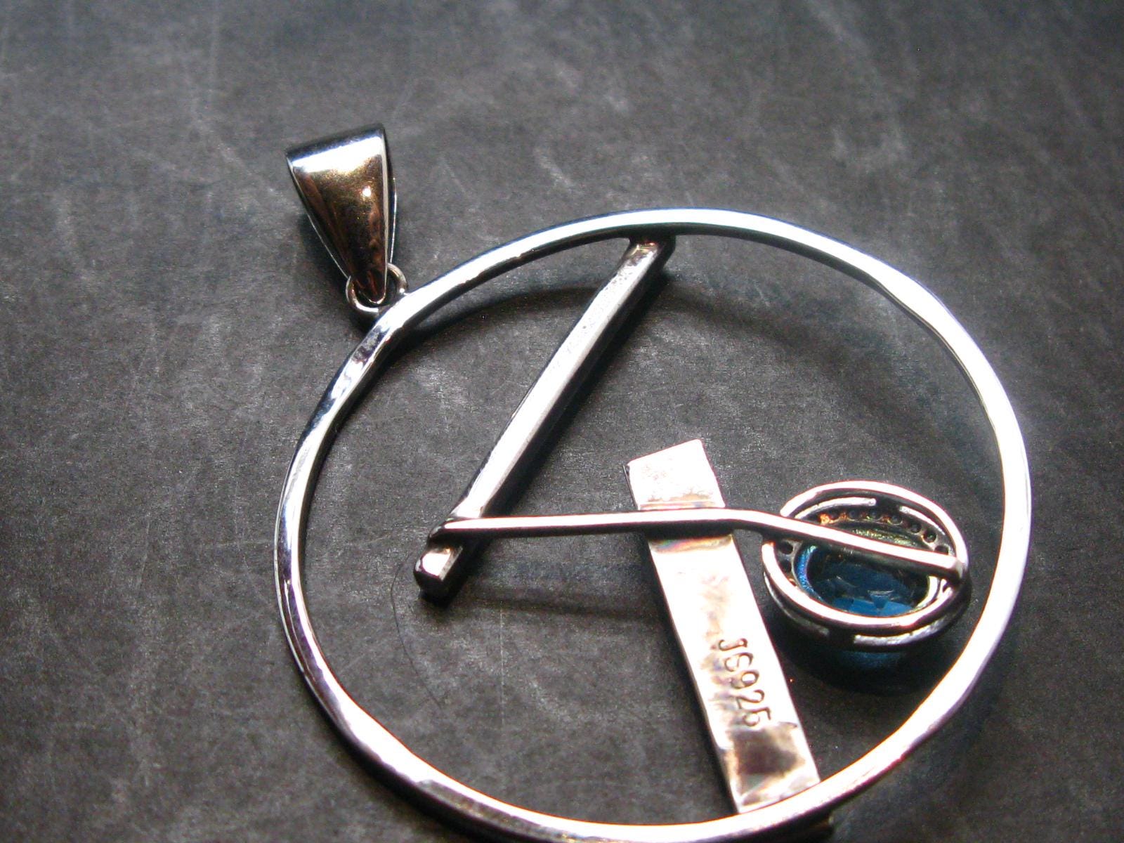 Blue Topaz Sterling Silver Pendant with CZ From Brazil - 2.0" - 7.06 Grams