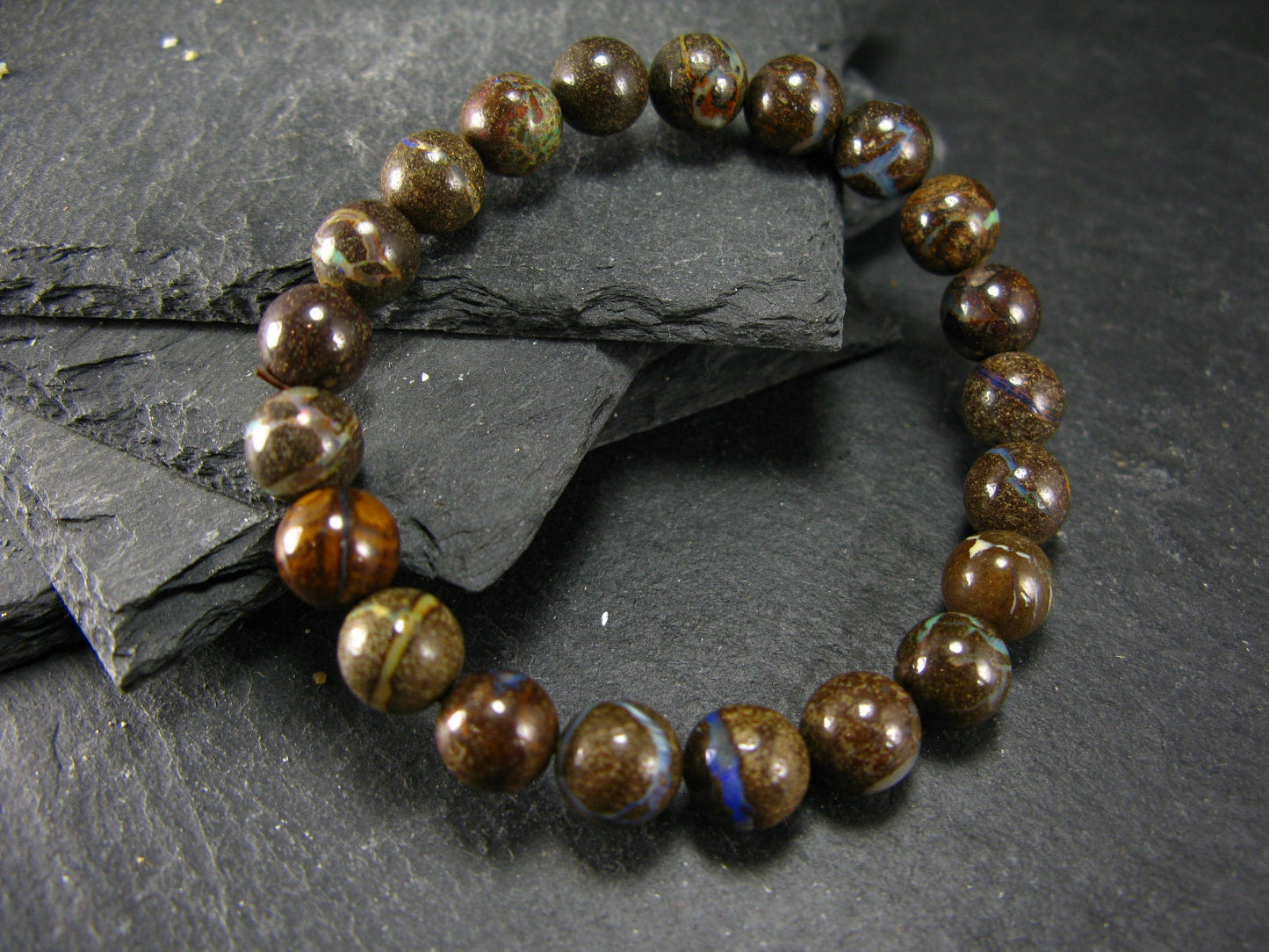 Boulder Opal Genuine Bracelet ~ 7 Inches ~ 8mm Round Beads
