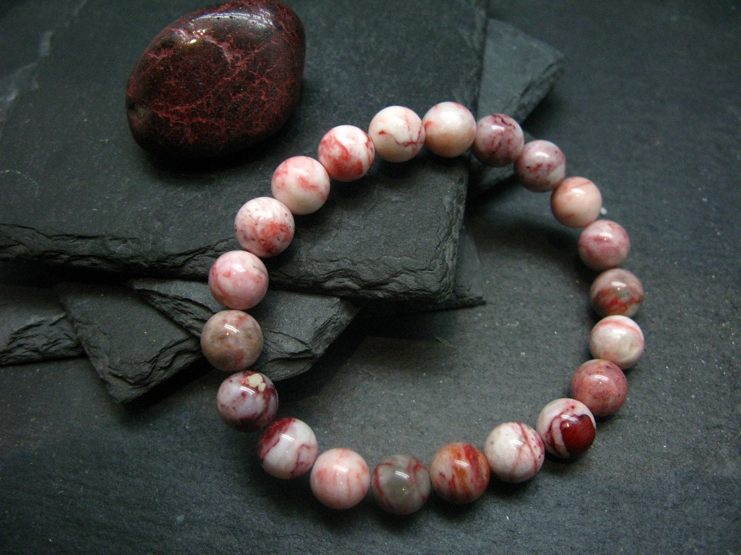 Cinnabar Genuine Bracelet ~ 7 Inches ~ 10mm Round Beads