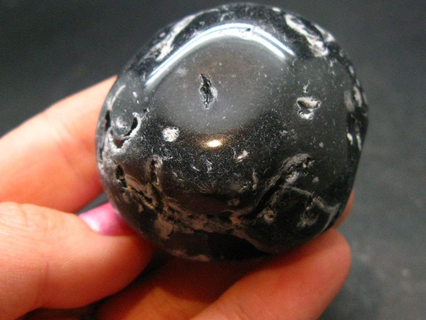 A really nice large dark green tumbled Cintamani Stone piece from indonesia. Its also known as Pearl of Fire.