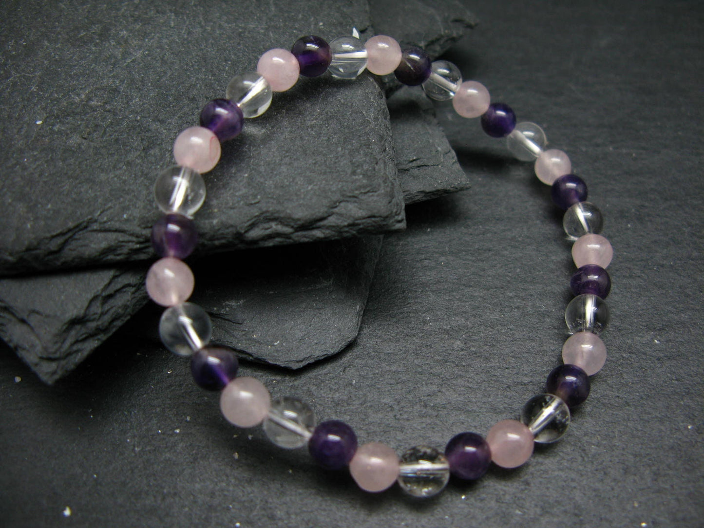Clear Quartz, Rose Quartz & Amethyst Genuine Bracelet ~ 7 Inches ~ 6mm Round Beads