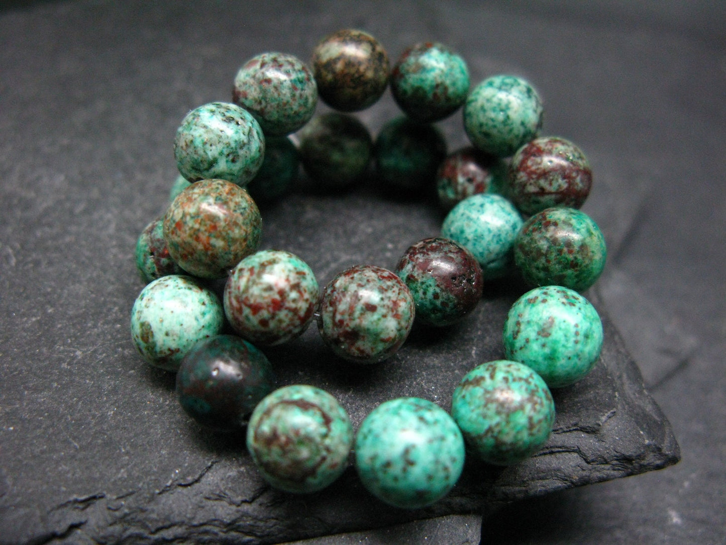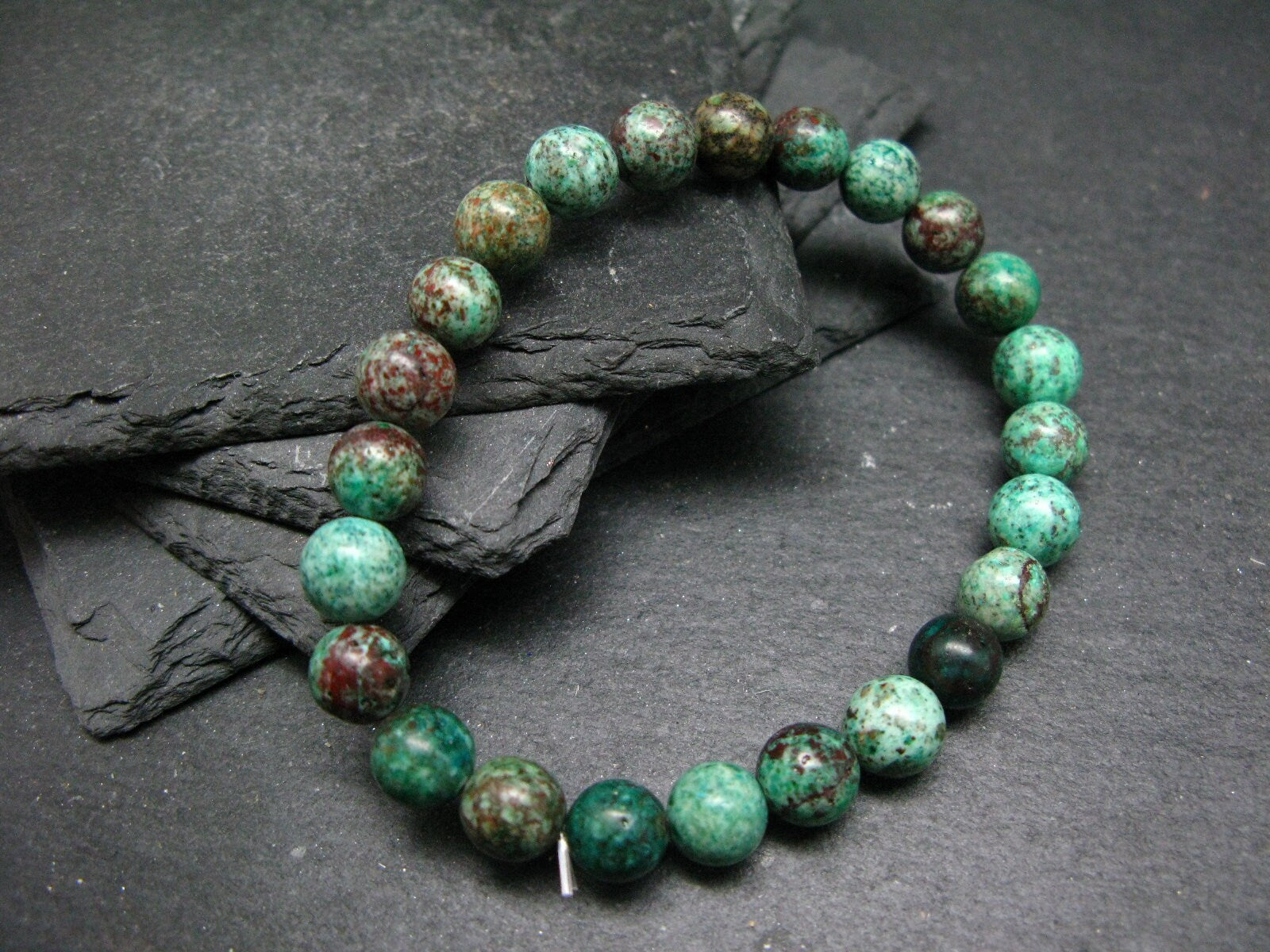You are bidding on a genuine Crimson Cuprite (Cuprite & Chrysocola) bracelet made with 100% natural stones from Mexico.