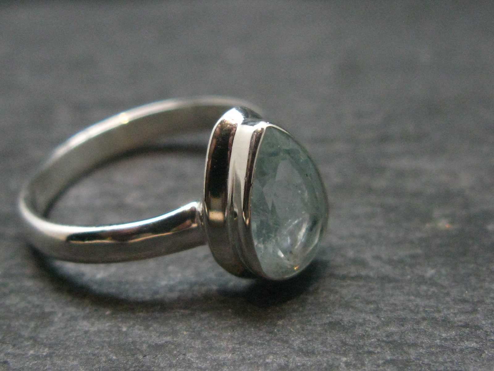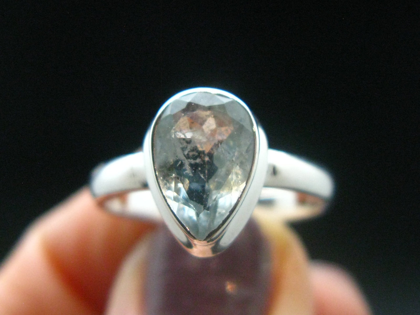 Cute Delicate Genuine Facetted Aquamarine Gem Sterling Silver Ring - Size 7 - 2.72 Grams