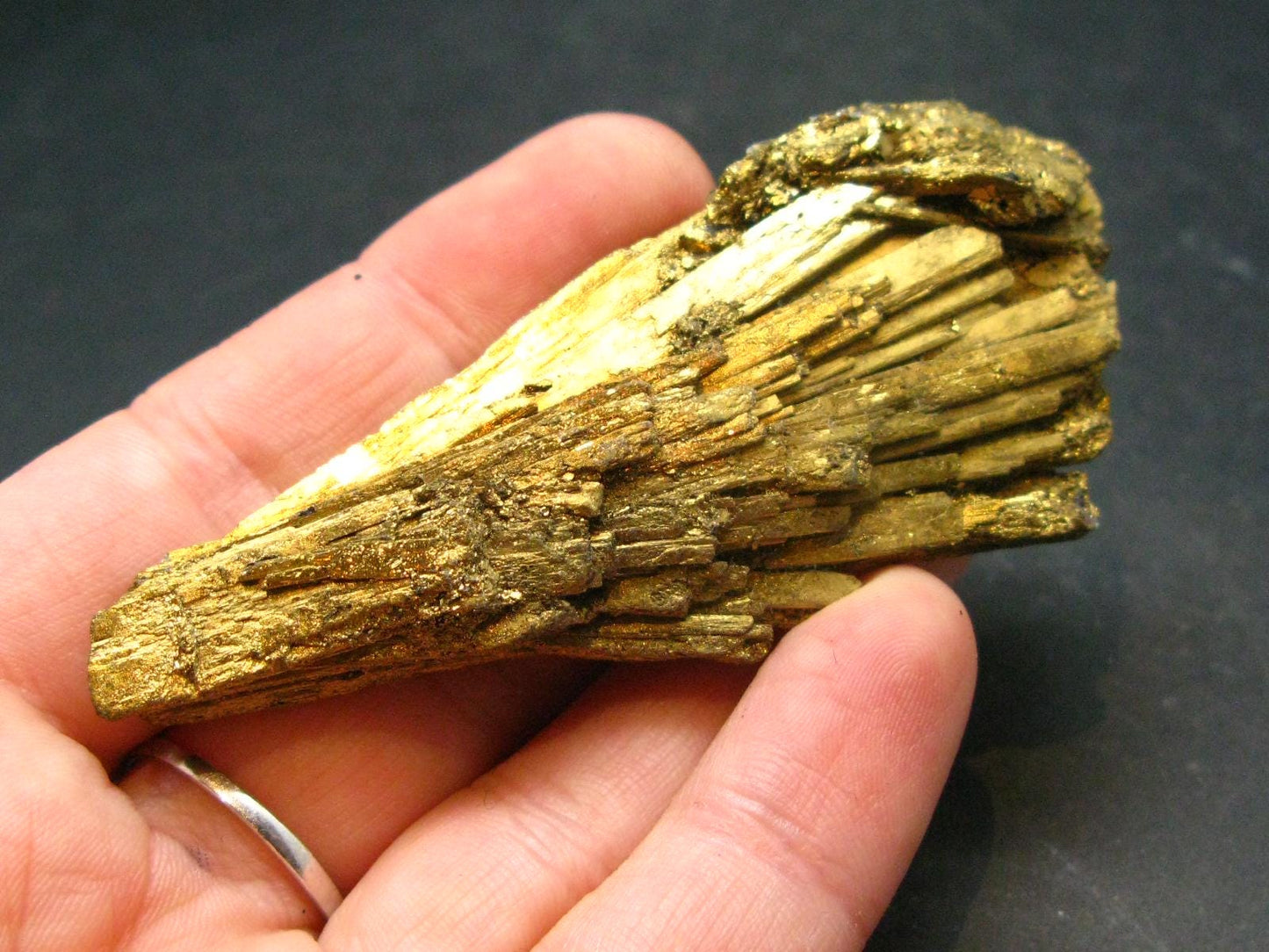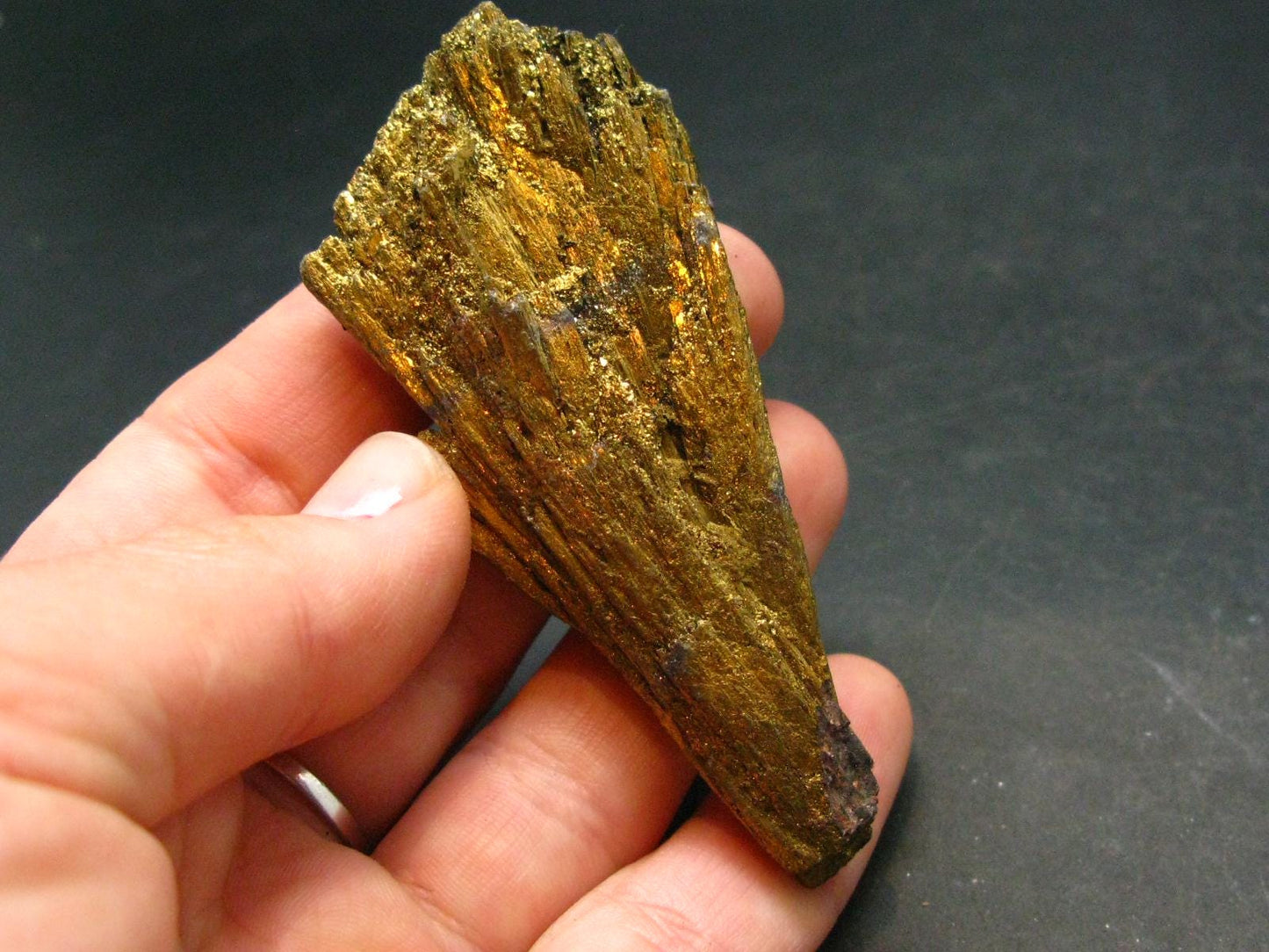 A beautiful rare dichroic gold Kyanite crystal with a titanium coating on black kyanite from Brazil in great condition.