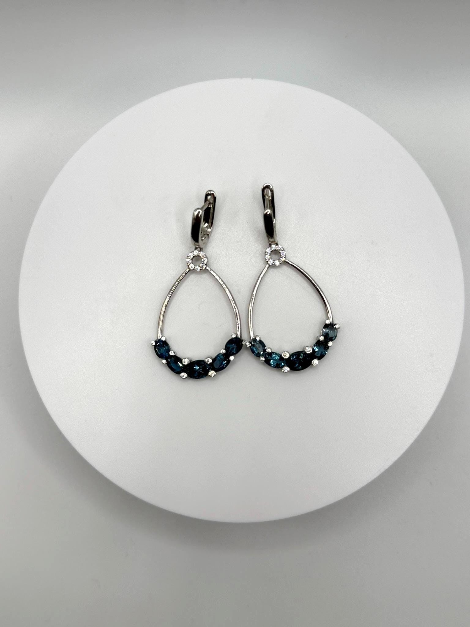 These elegant teardrop earrings feature a graceful sterling silver frame adorned with rich, deep London Blue Topaz stones. The curved design and sparkling accents bring movement and light to your look - perfect for both everyday wear and special occasions.