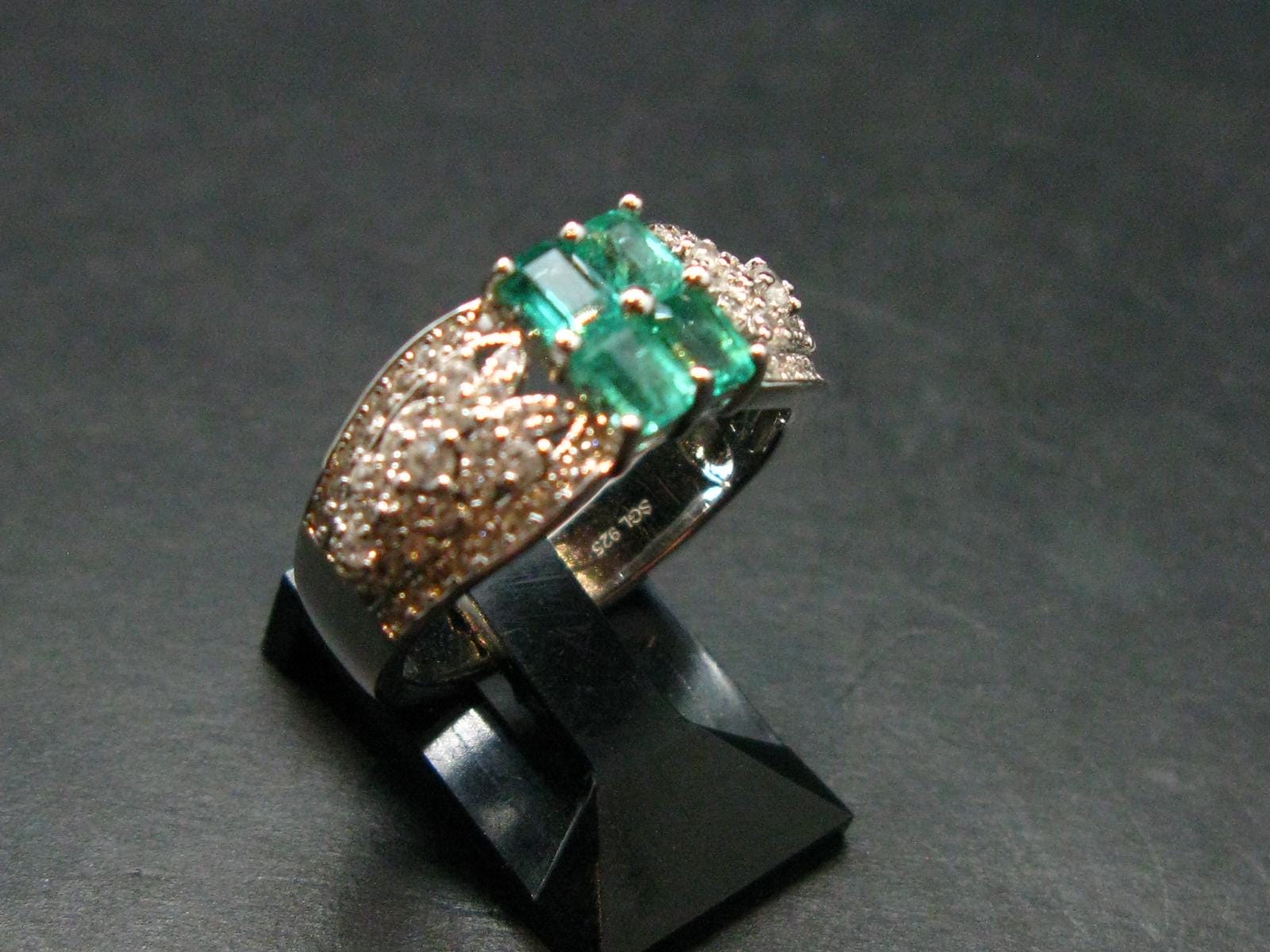Emerald Crystal Silver Ring from Colombia - 0.83 carats - Size 7.5