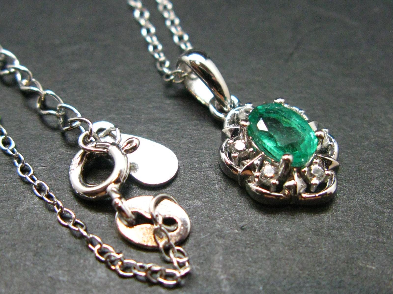 This is a very nice Emerald silver pendant with chain from Colombia. Chain is 18 inches long can be adjusted to 19 inches.