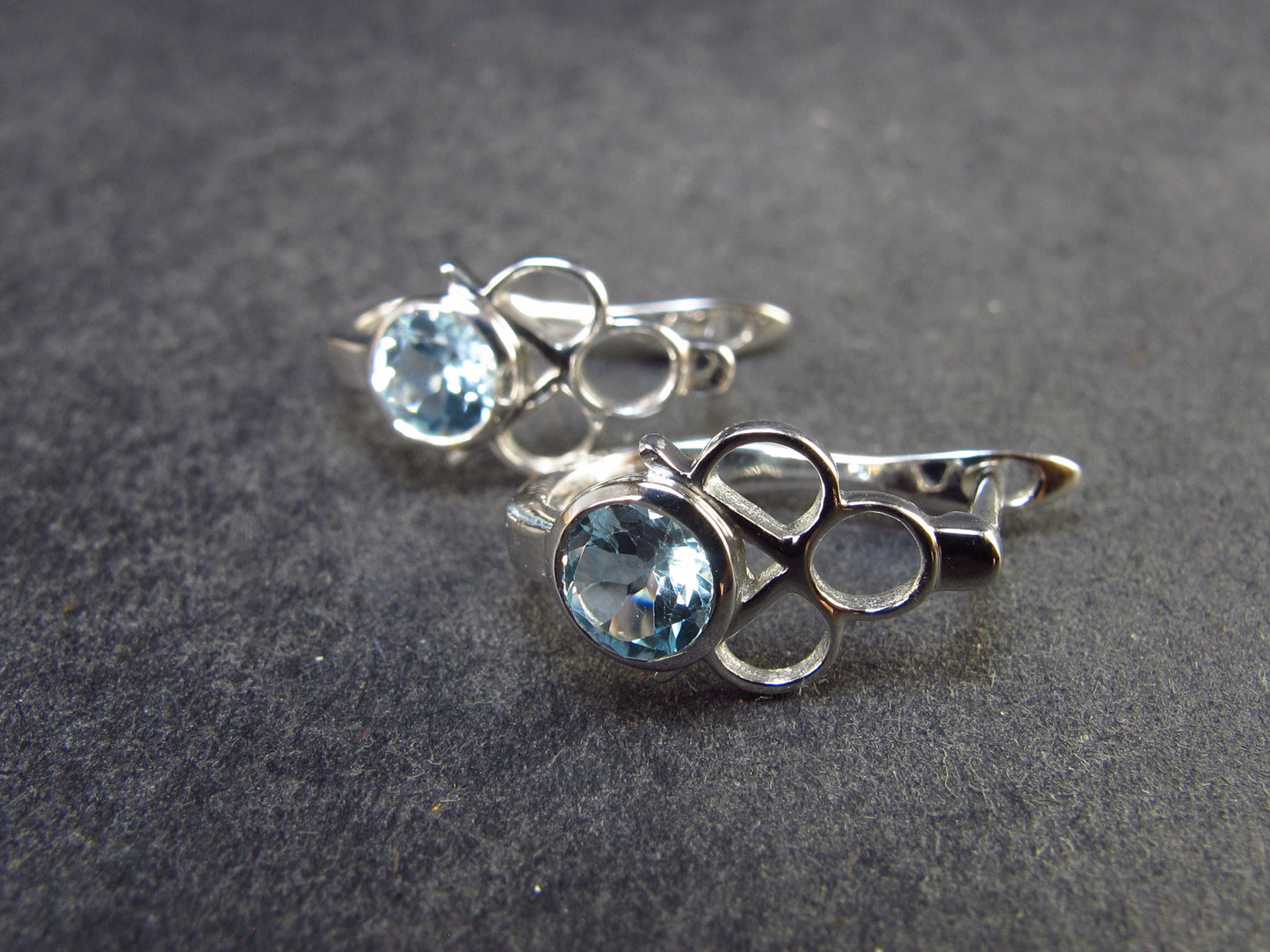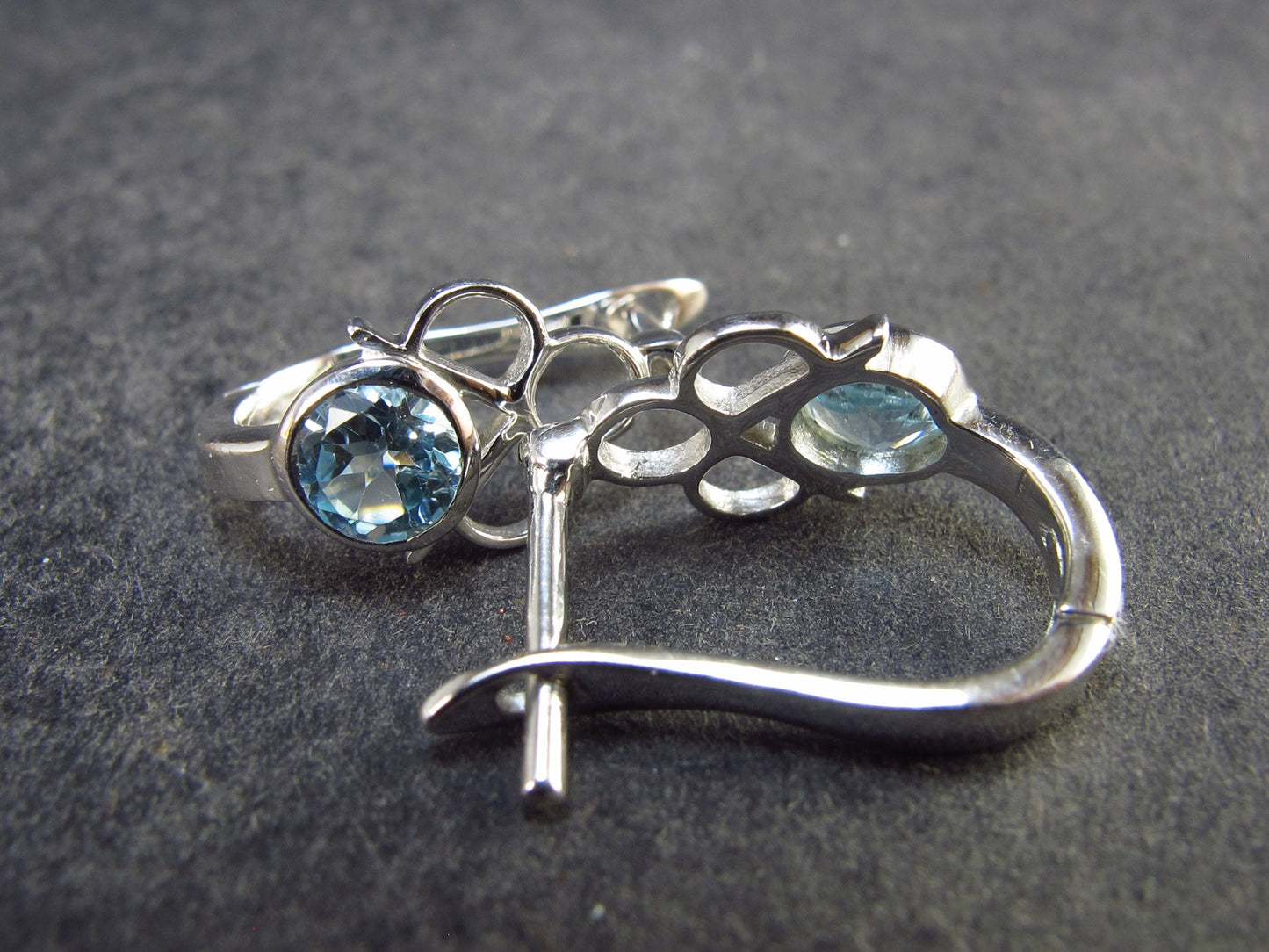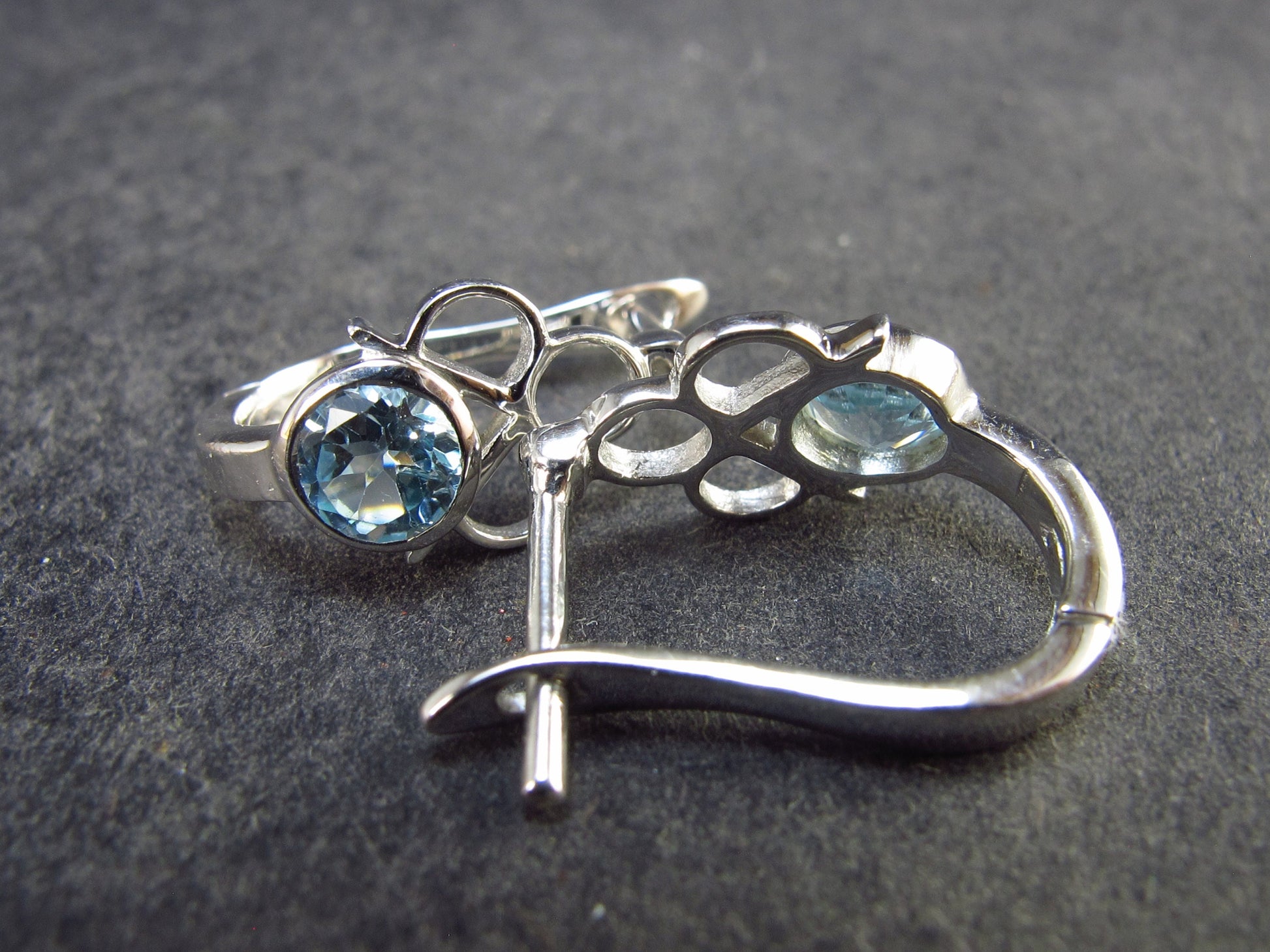Faceted natural Sky Blue Toapz Dangle 925 Silver Earrings from Brazil.