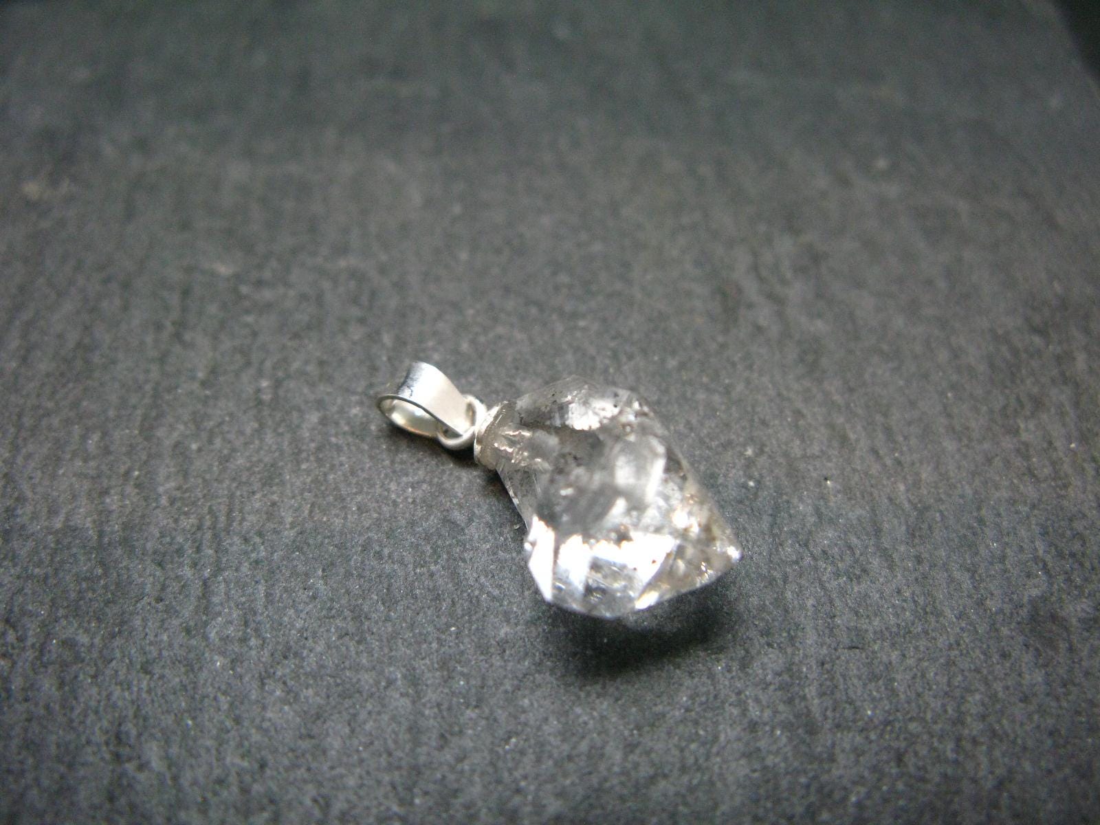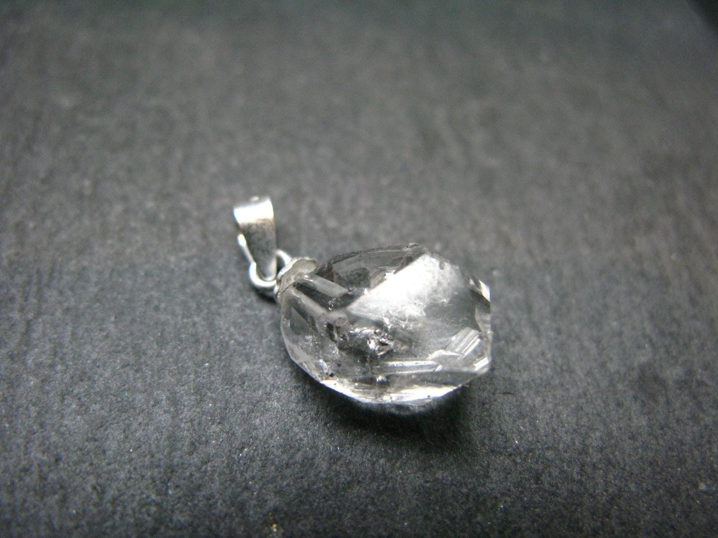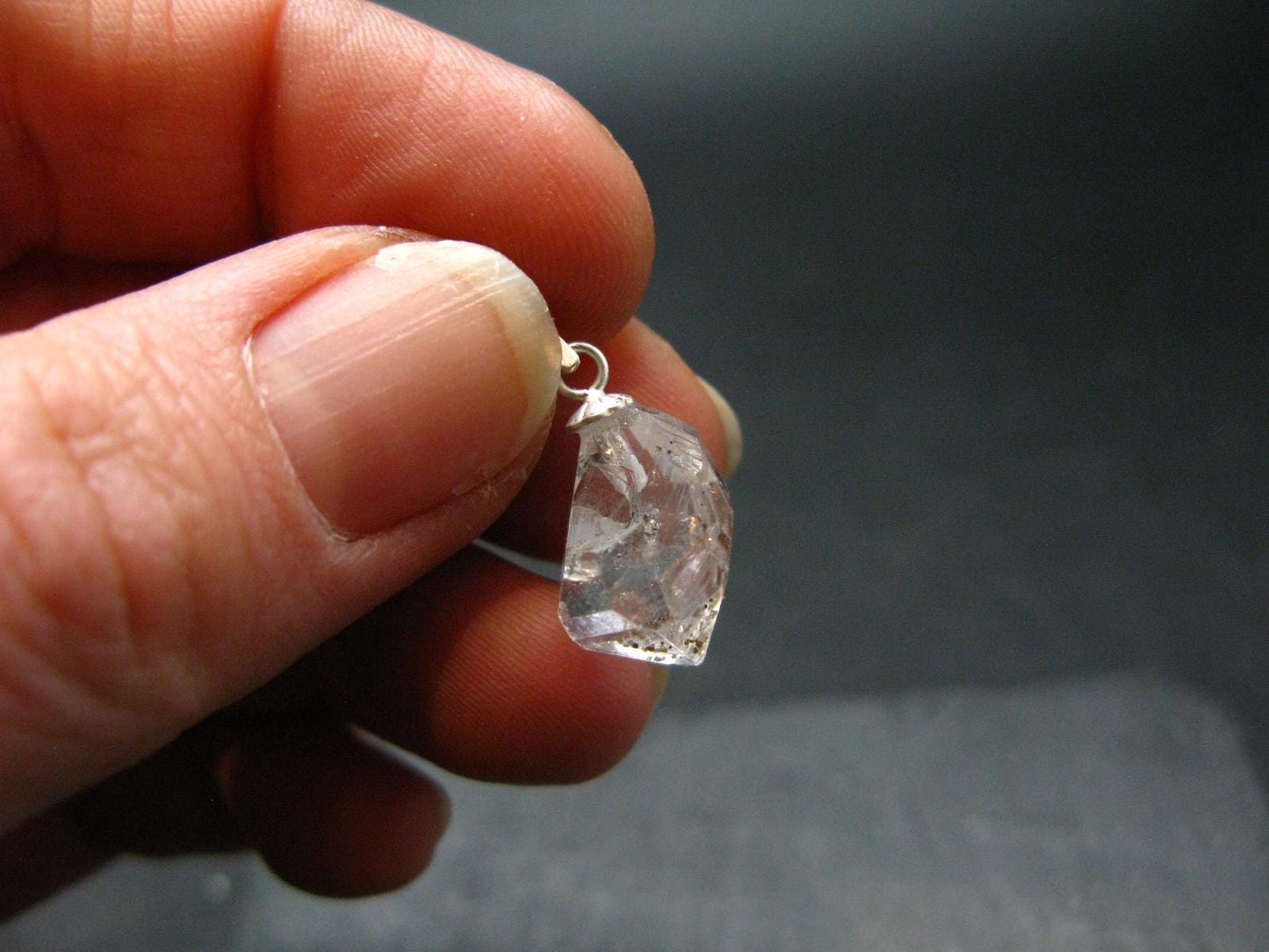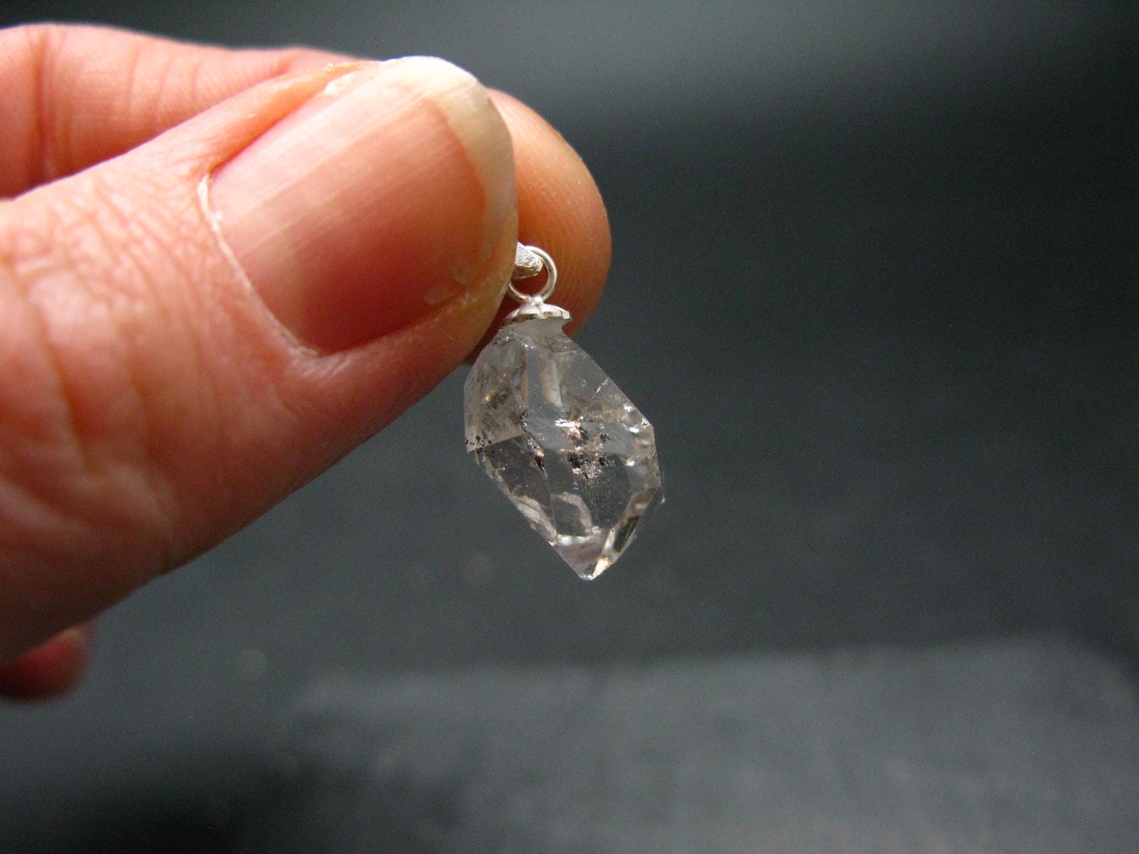 Fine Natural Herkimer Diamond Silver Pendant From New York 0.7" - 1.30 Grams