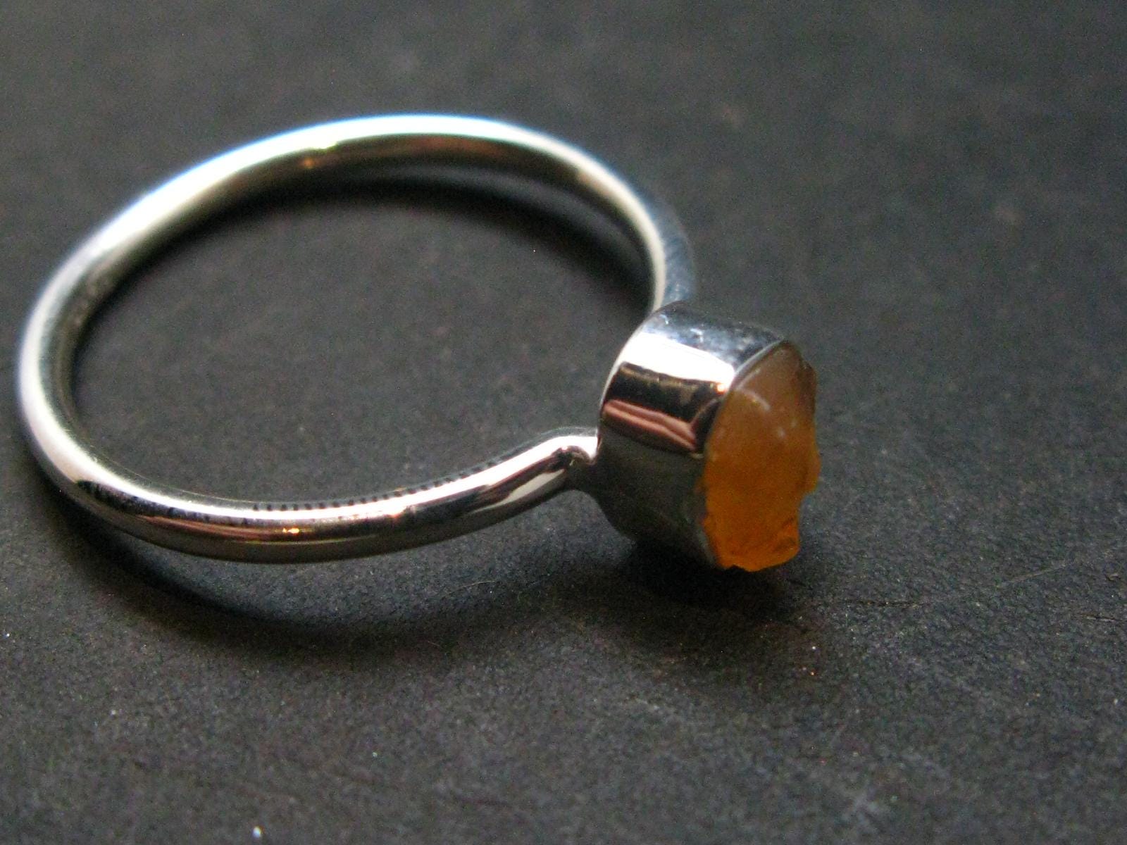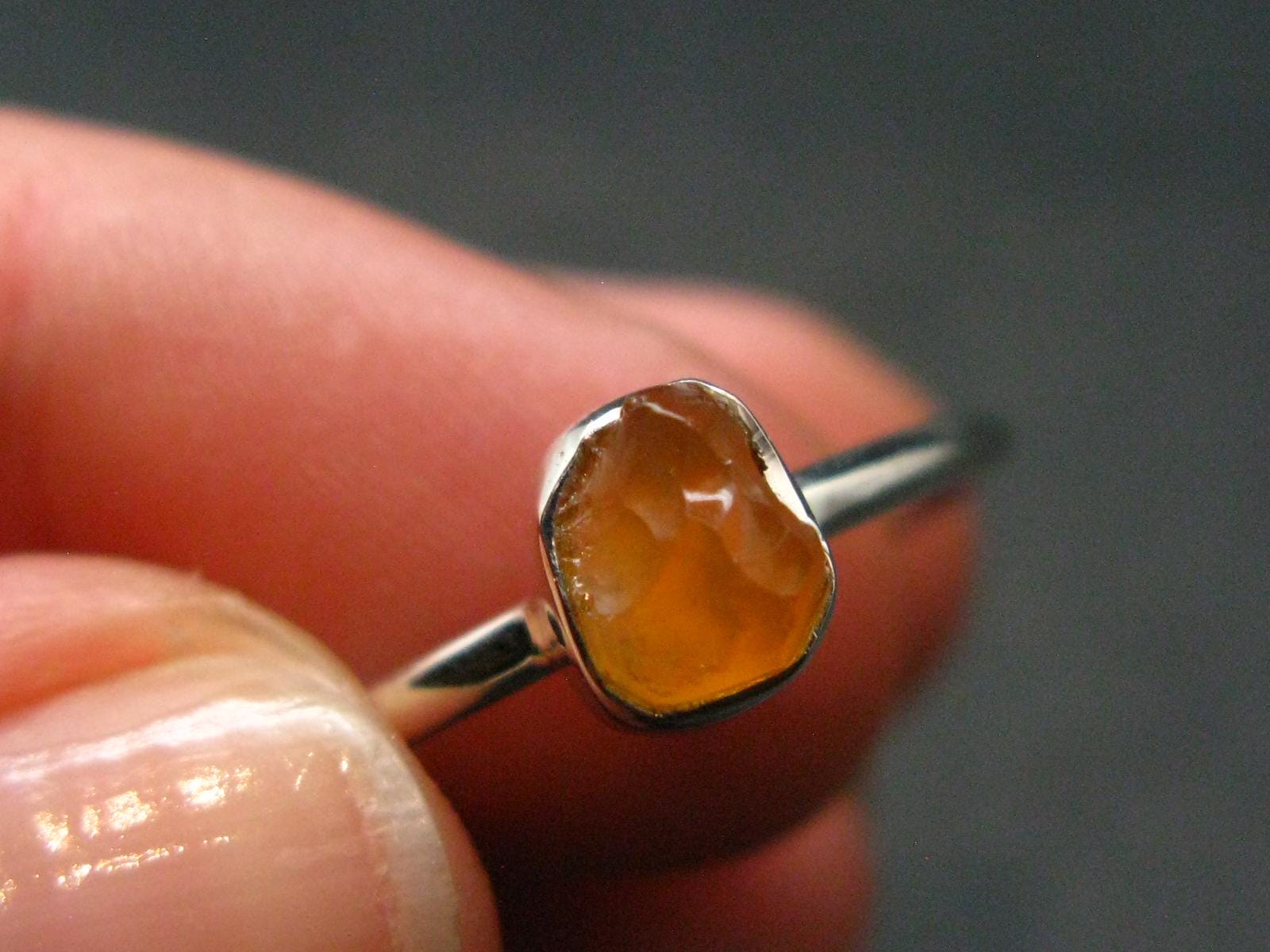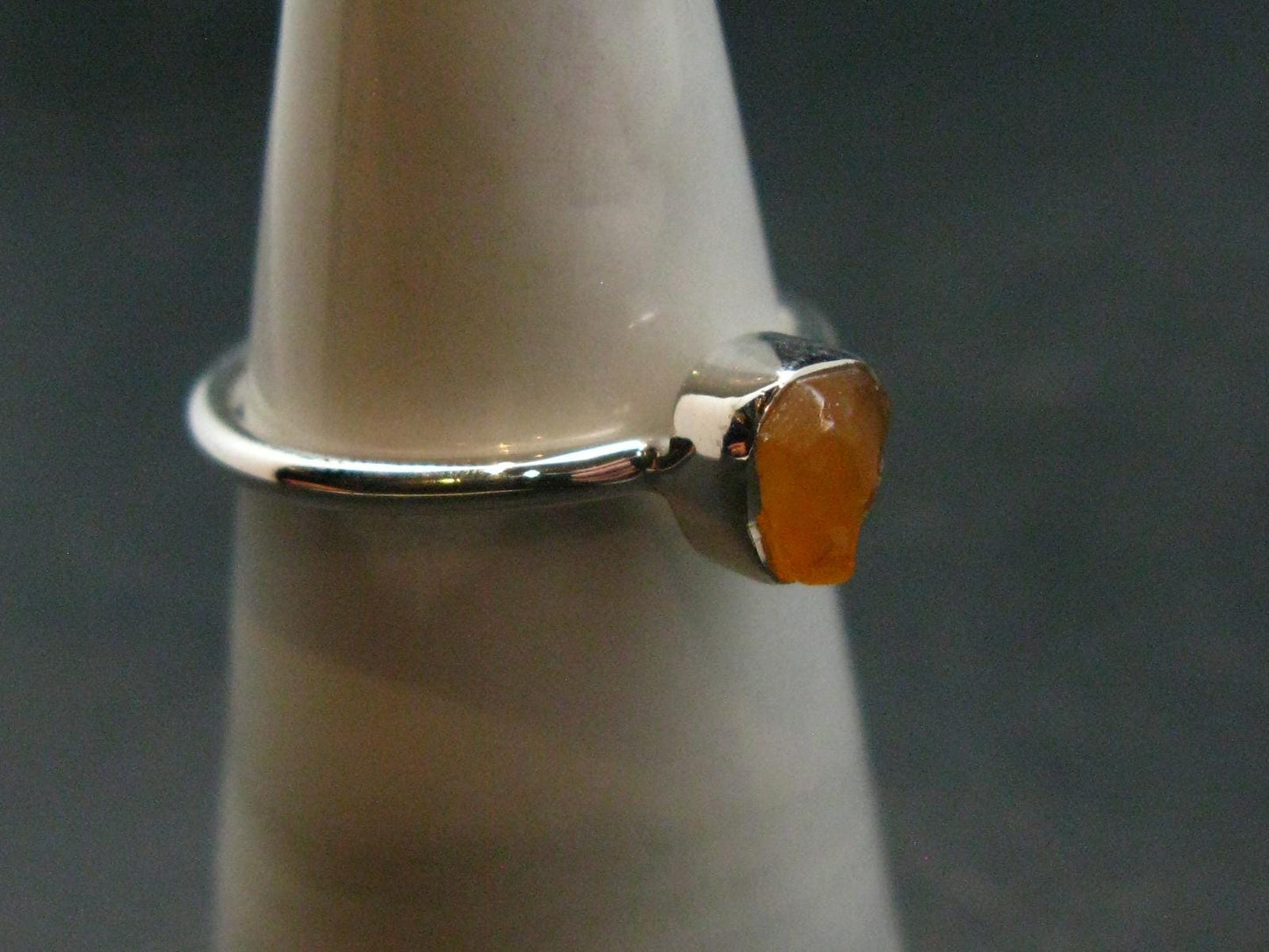 An extremely rare rough Fire Opal silver ring crystal from Mexico.
