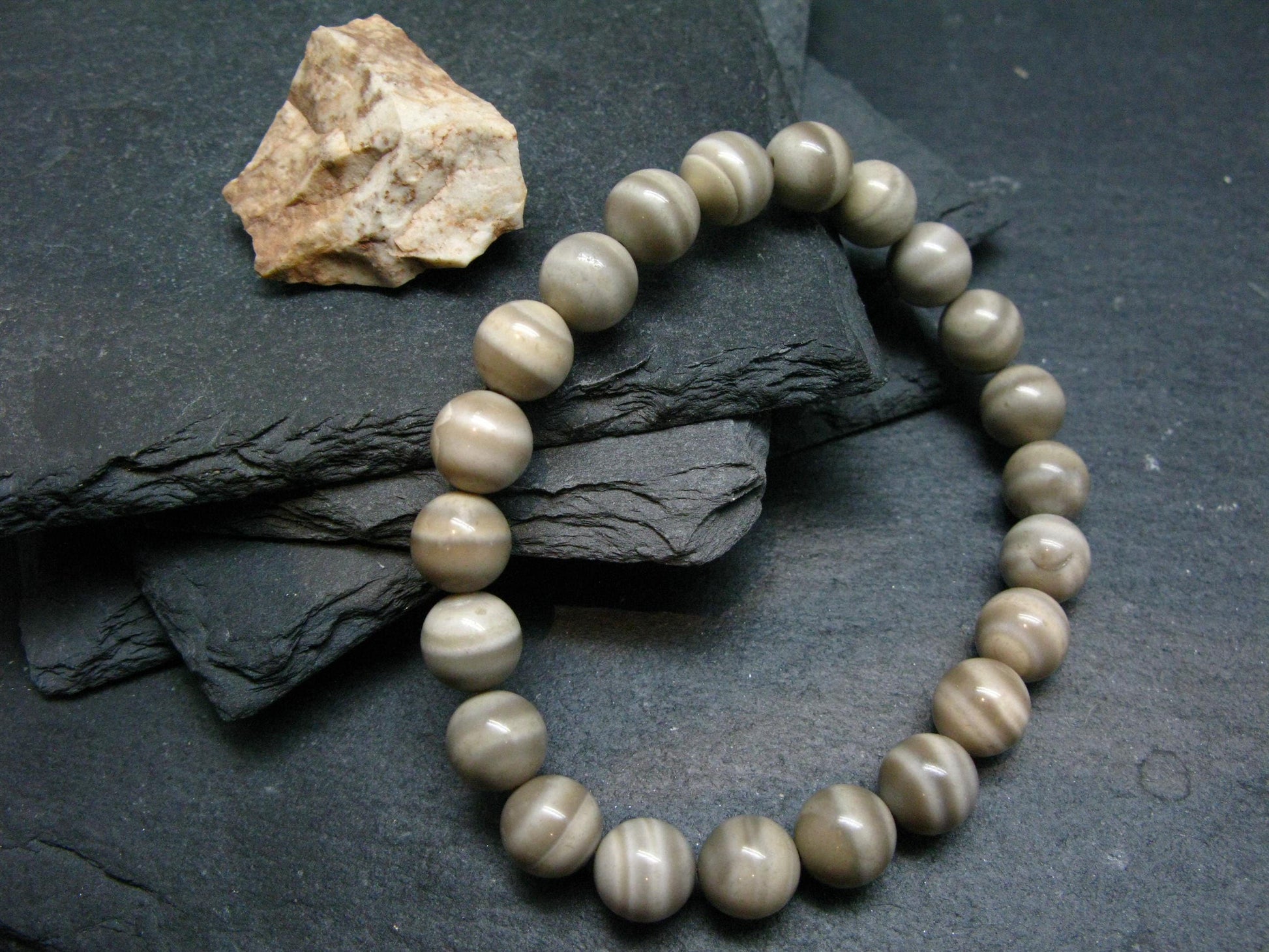 Flint Genuine Bracelet ~ 7 Inches ~ 8mm Round Beads