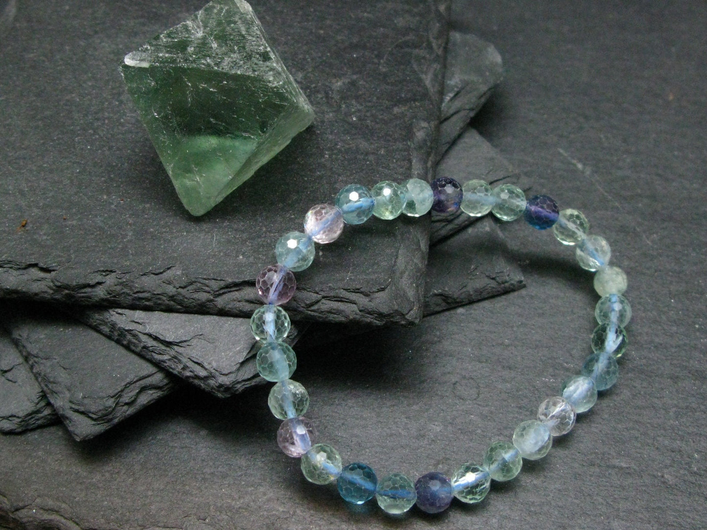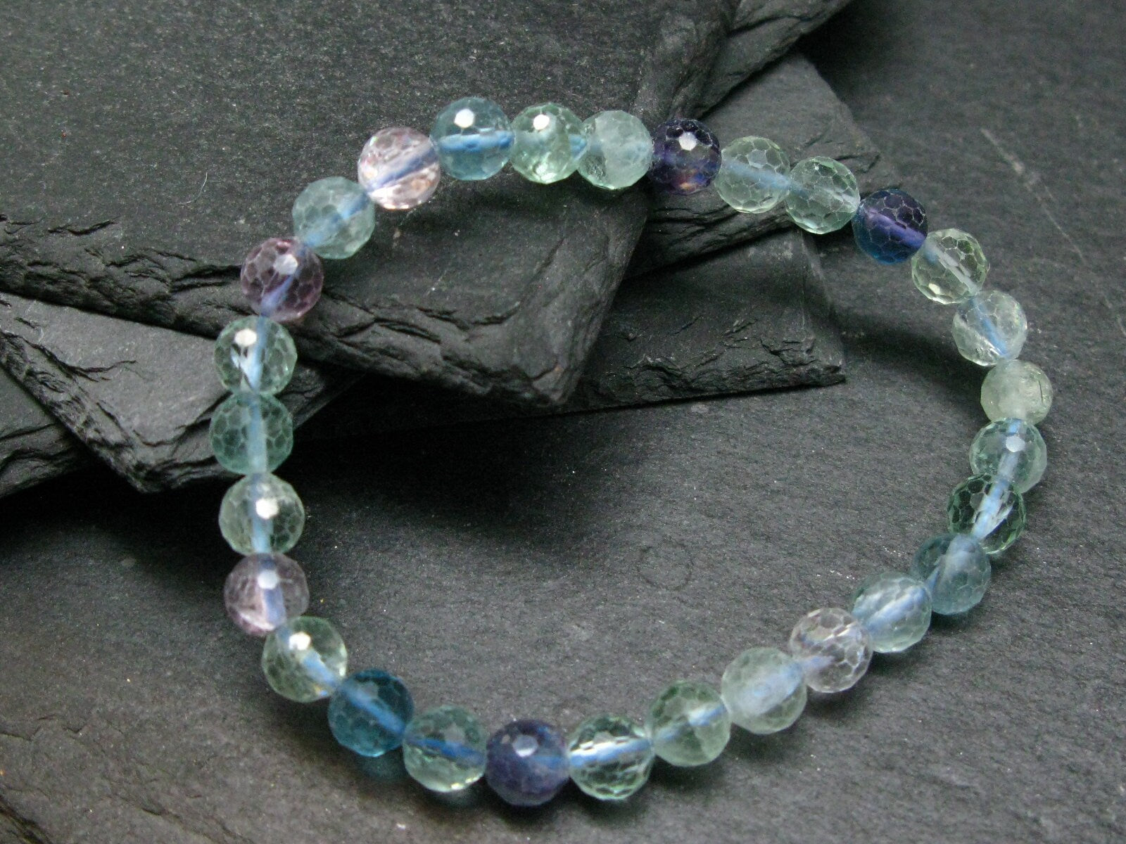 Fluorite Genuine Bracelet ~ 7 Inches ~ 6mm Facetted Beads
