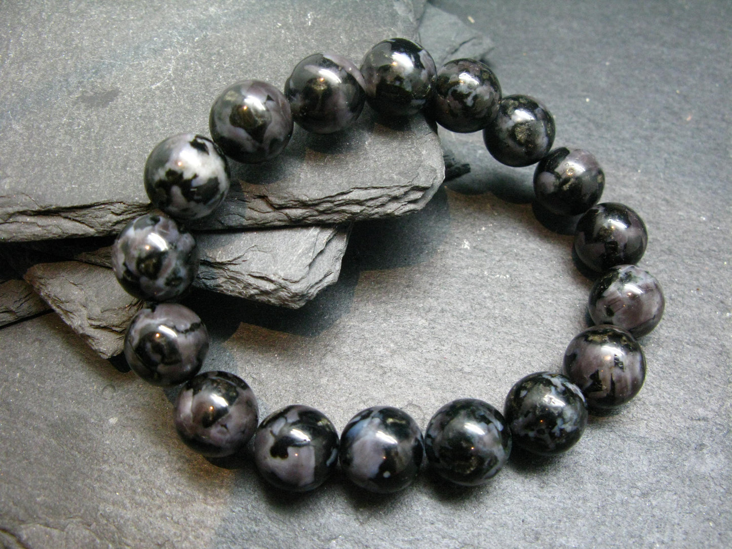 Gabbro Mystic Merlinite Genuine Bracelet ~ 7 Inches ~ 12mm Round Beads