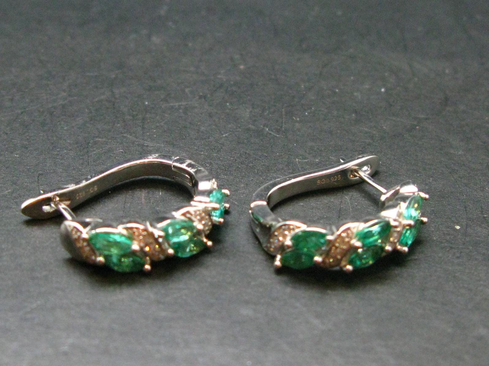 This is a very nice gem quality genuine Emerald earrings set in sterling silver.