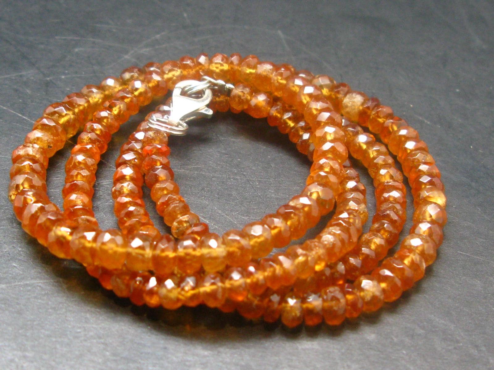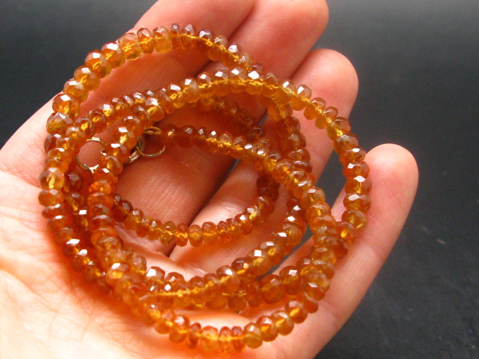A beautiful rare gem quality Hessonite Garnet necklace from Quebec, Canada with gem rondelle beads. It weighs 24.28 grams and beads are up to 6mm in diameter.
