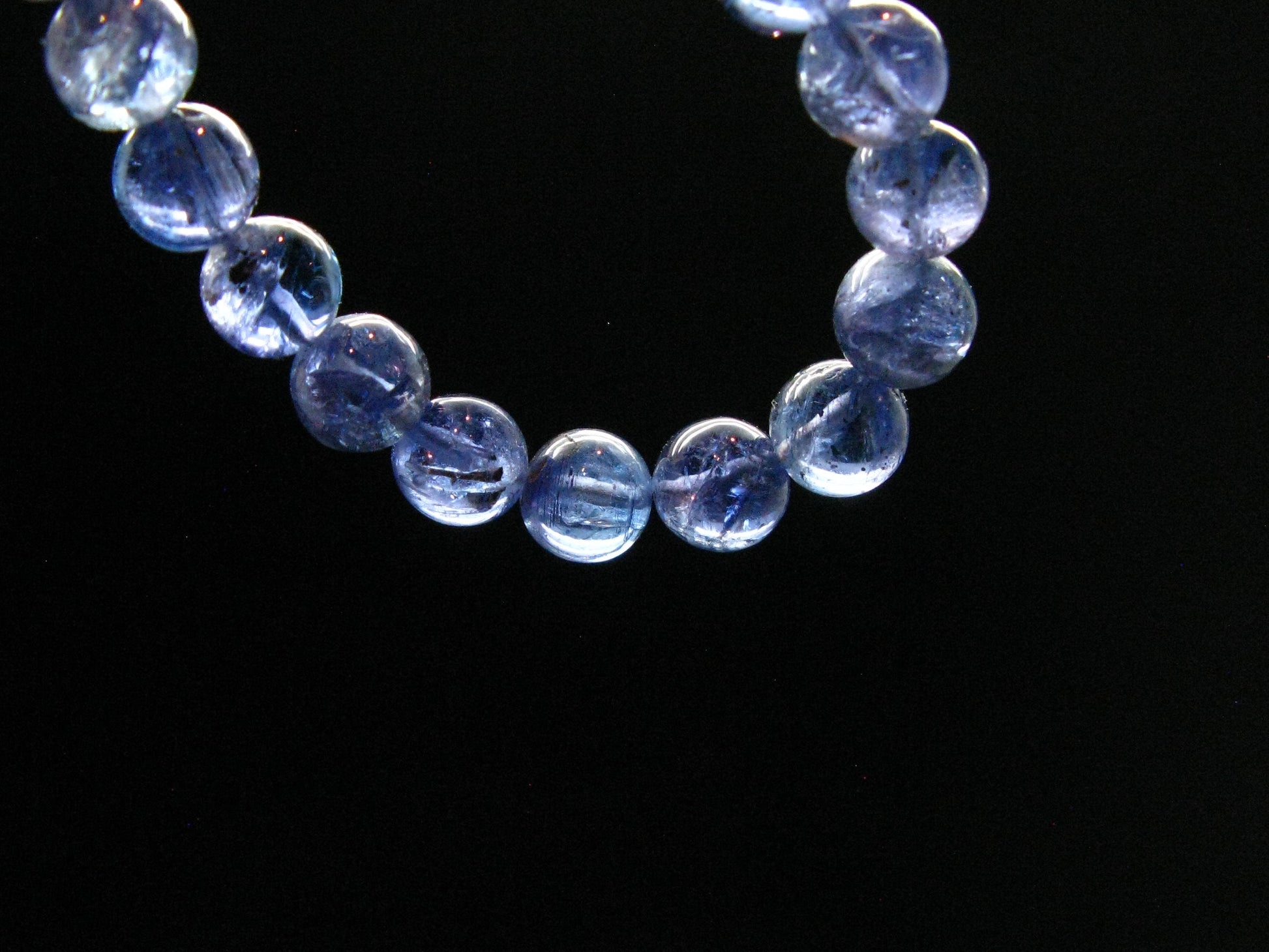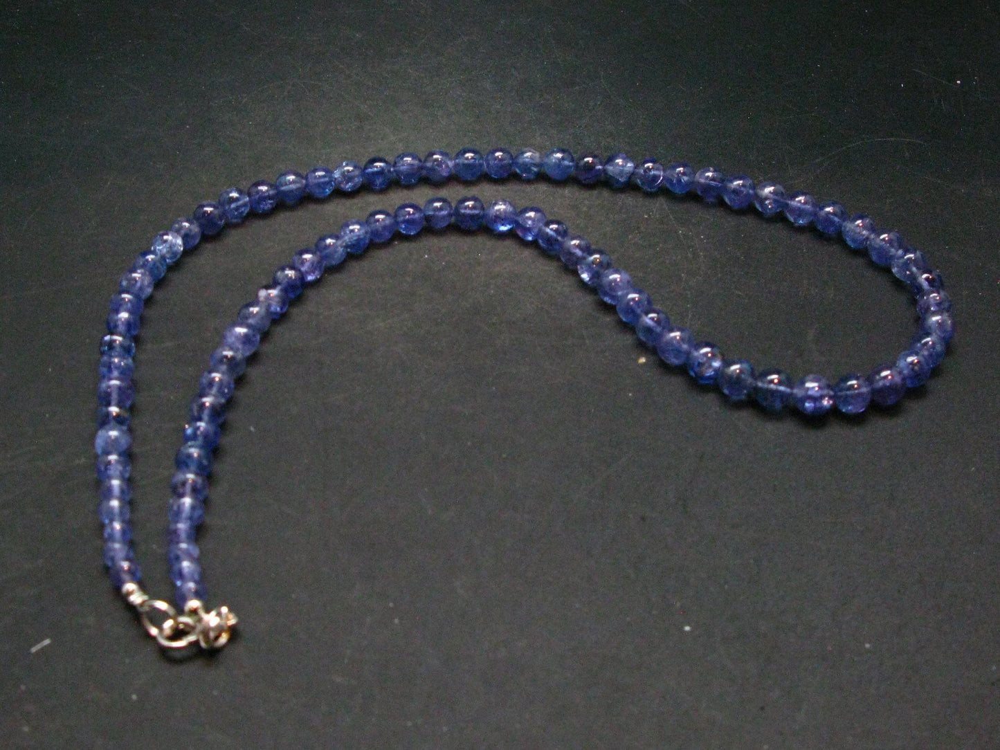 A beautiful Tanzanite Zoisite necklace with large 6mm round beads from Tanzania. It weighs 33.6 grams and has a sterling silver clasp. Very nice necklace.