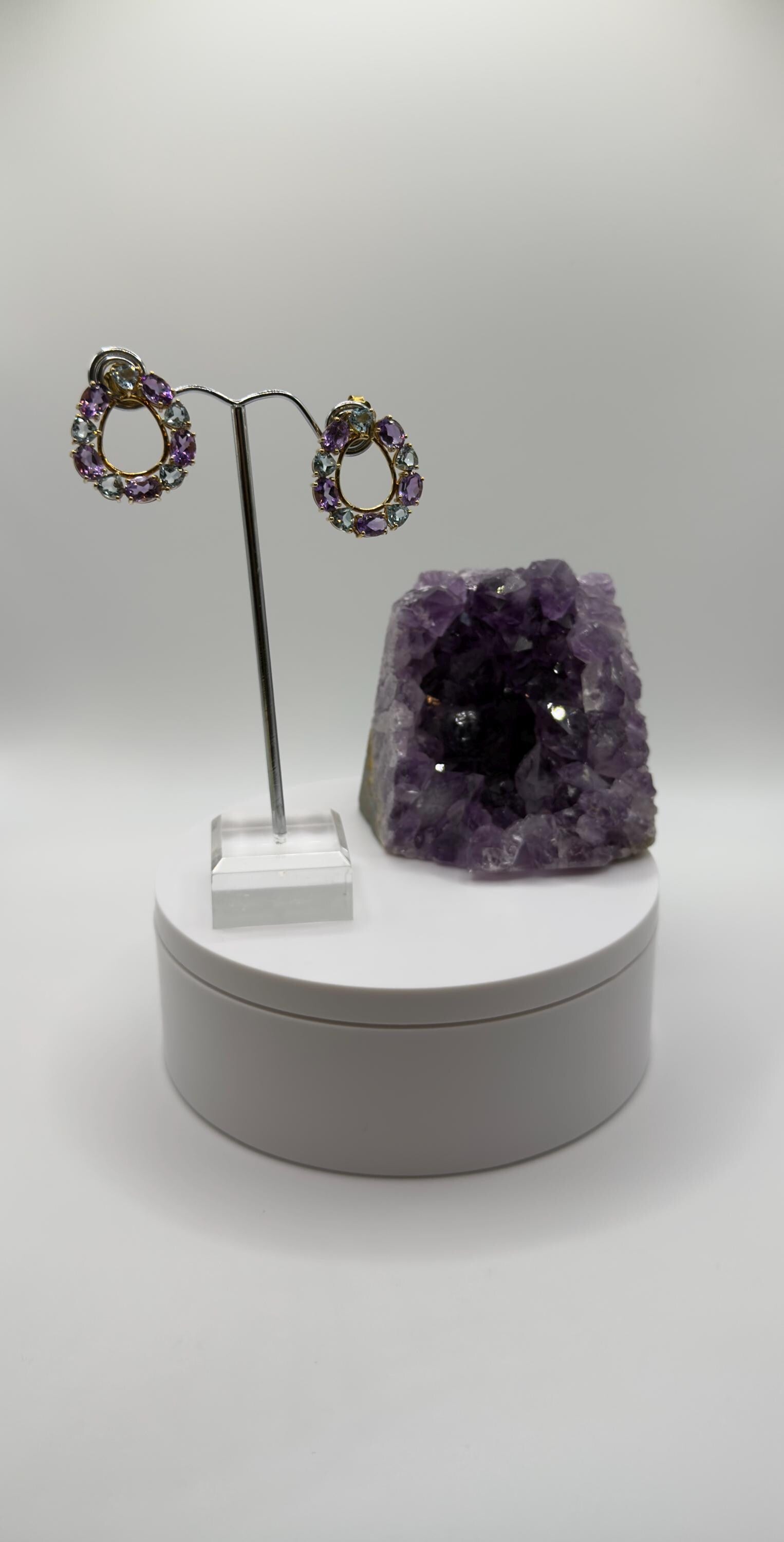 Make a statement with these luxurious gold-plated hoop earrings, set with alternating faceted amethysts and topaz. Their radiant circle design captures elegance and vibrance, perfect for evenings out or elevating everyday looks.