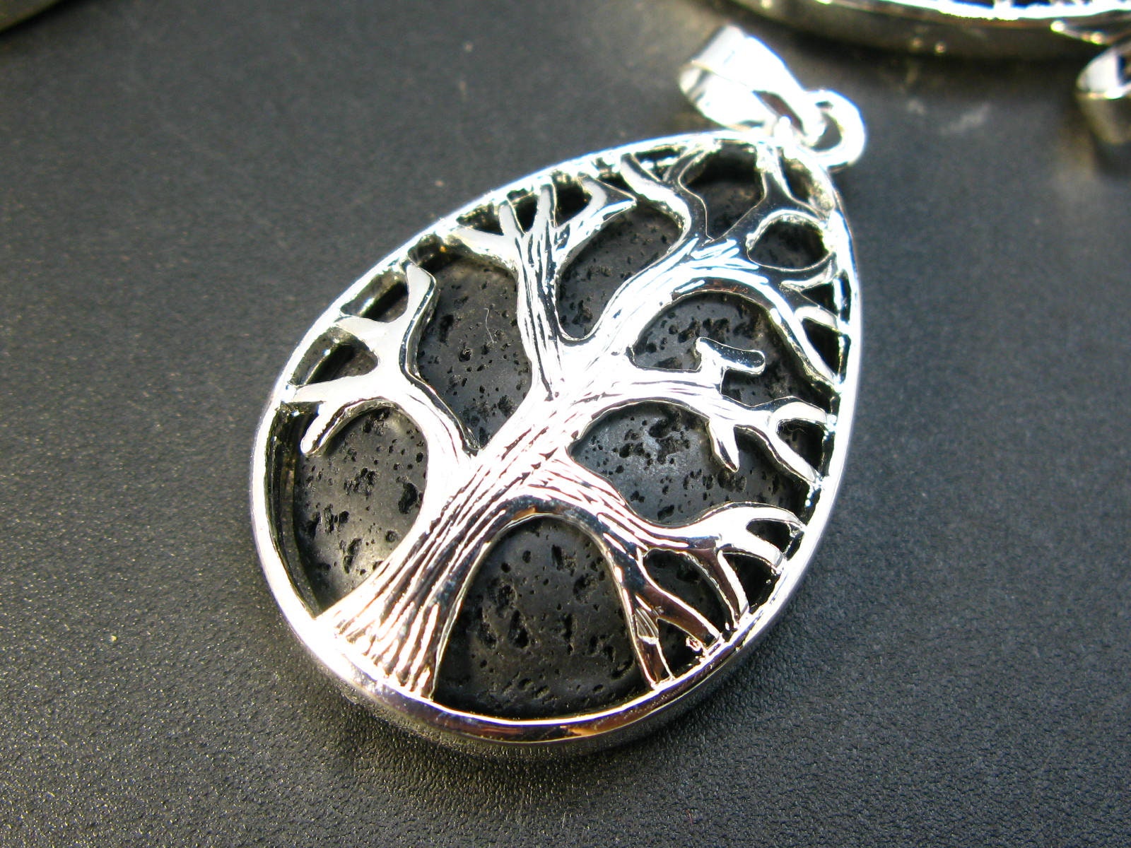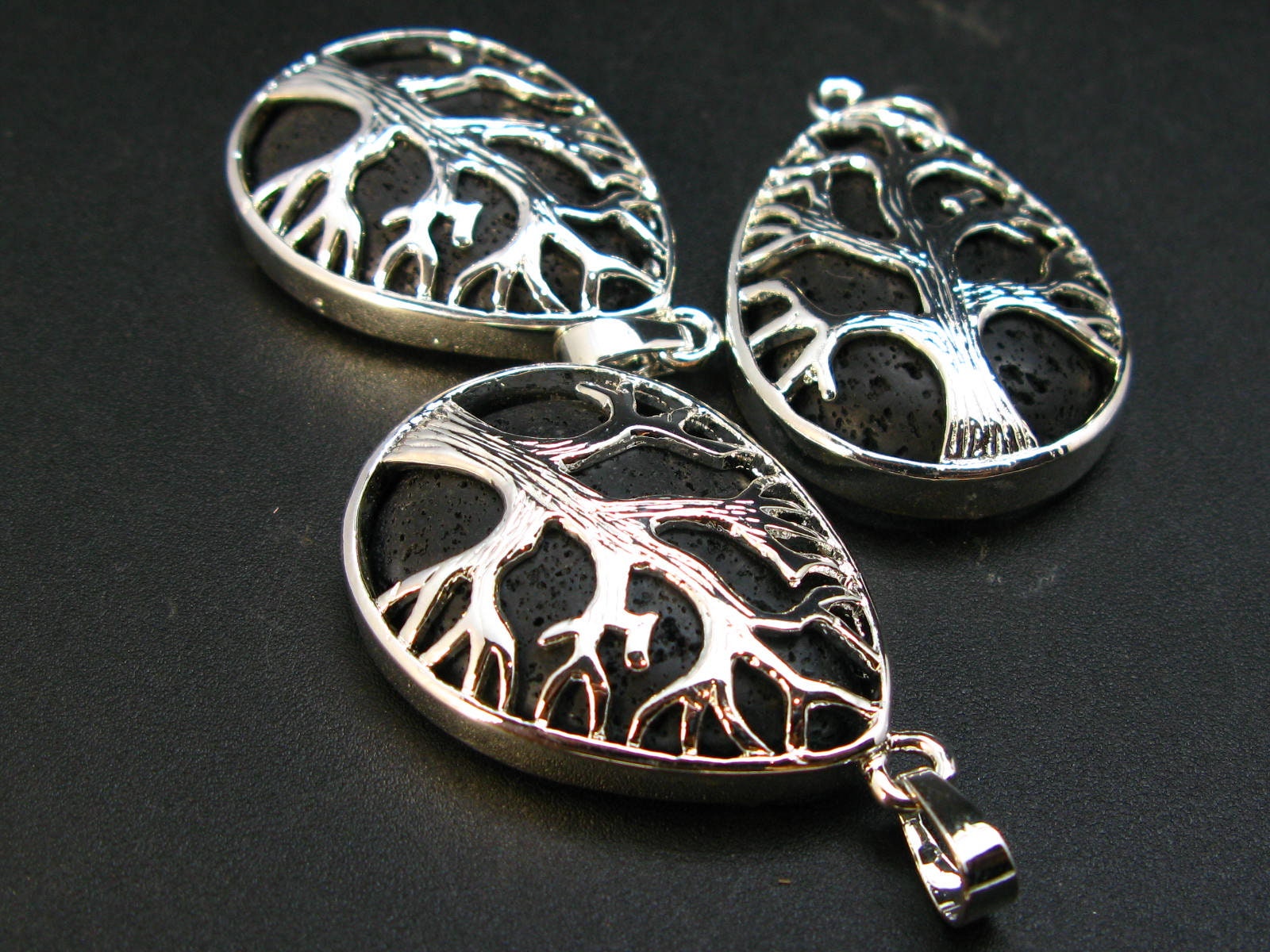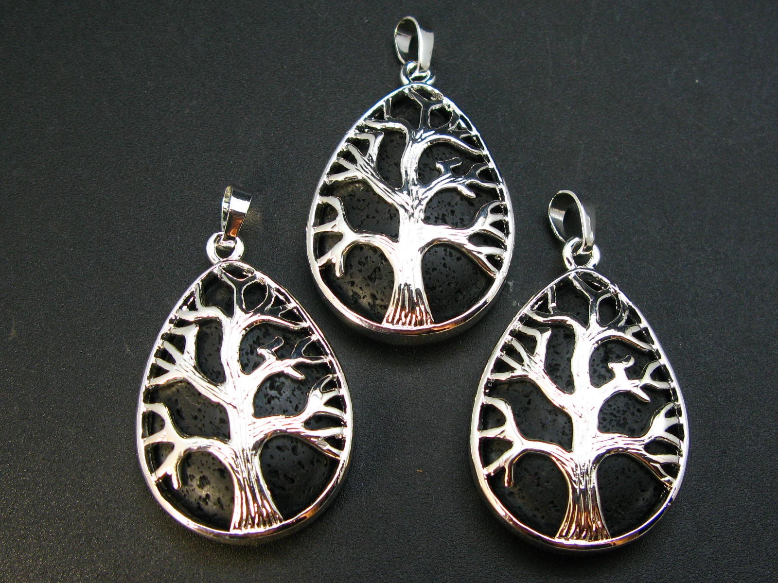 Lot of 3 Drop Shape Lava Tree of Life Pendants.
