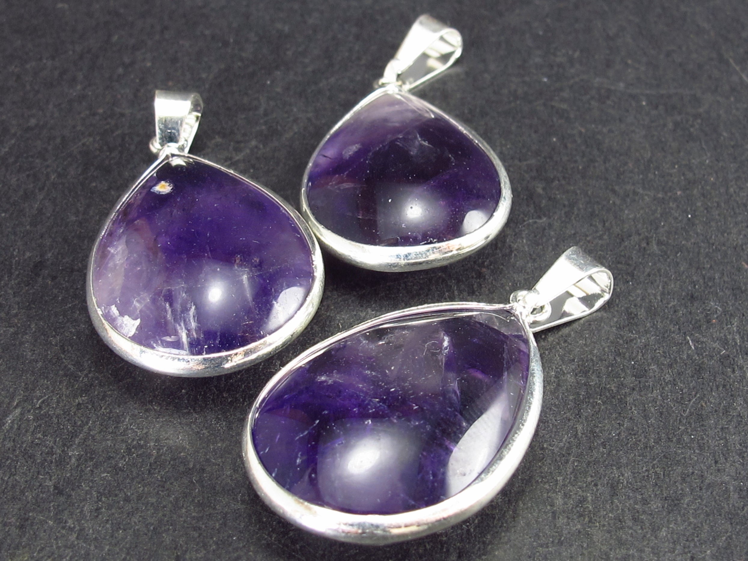 This is a lot of 3 natural rich purple Amethyst Drop Shaped Pendants from Brazil.