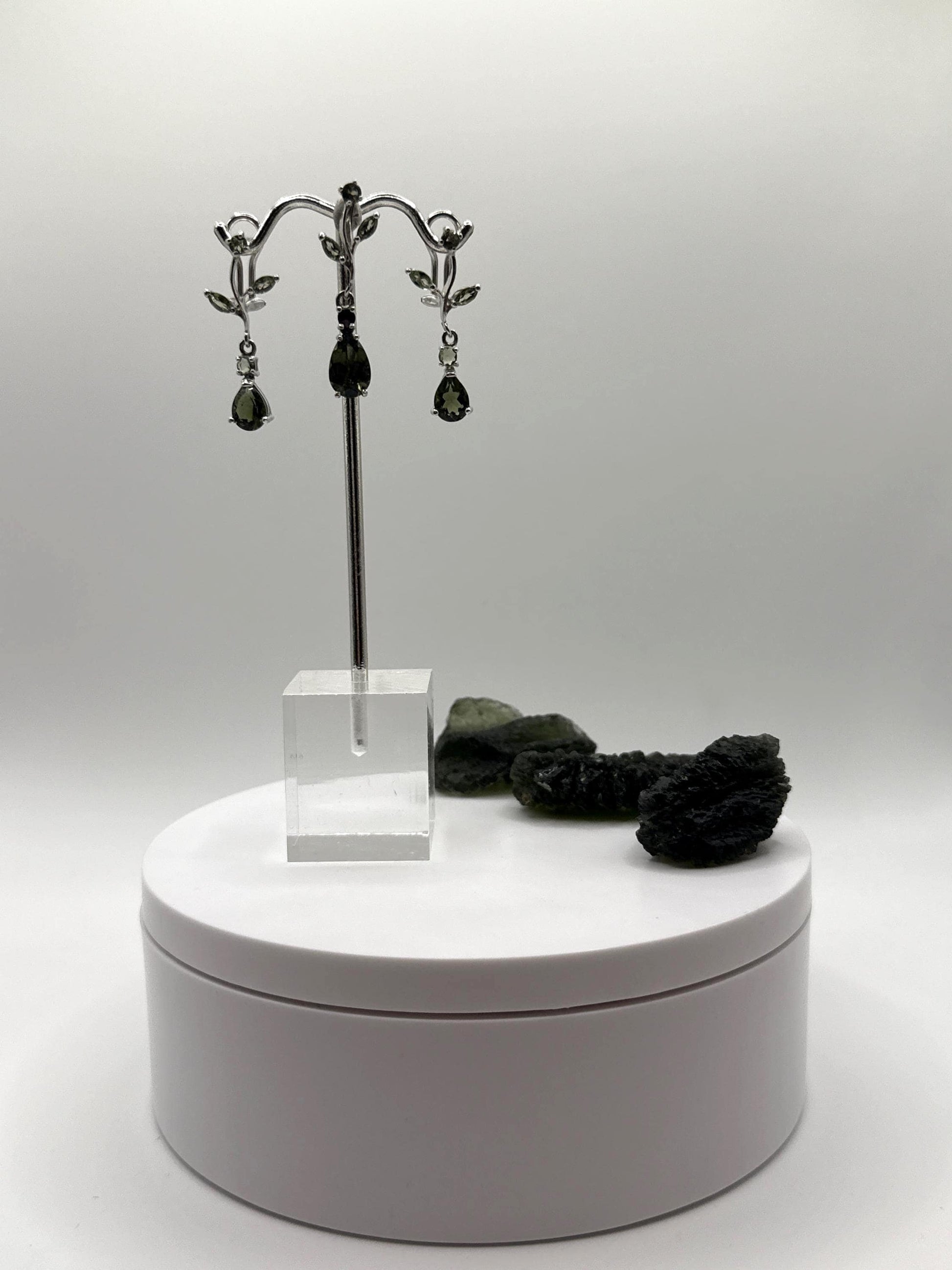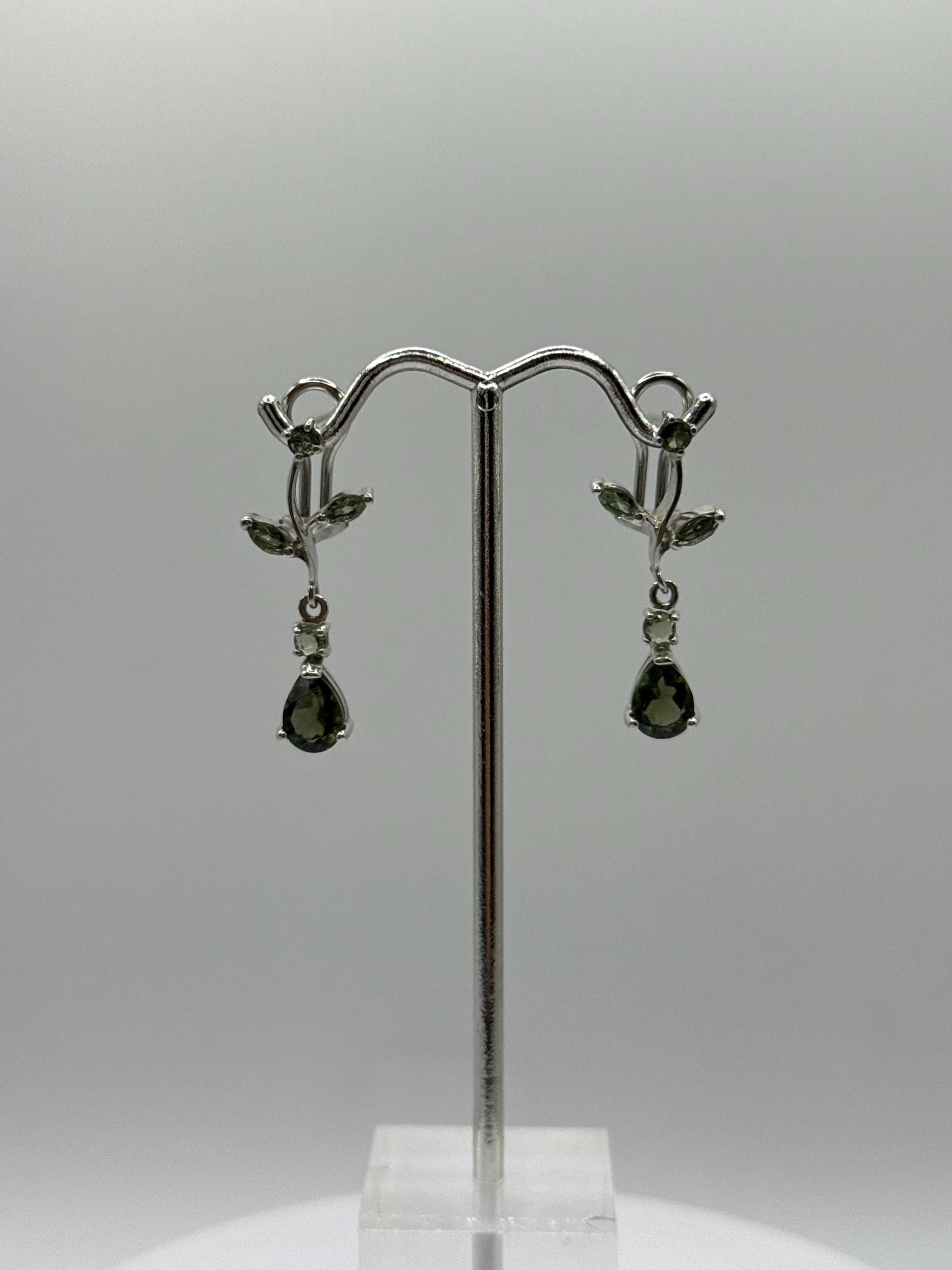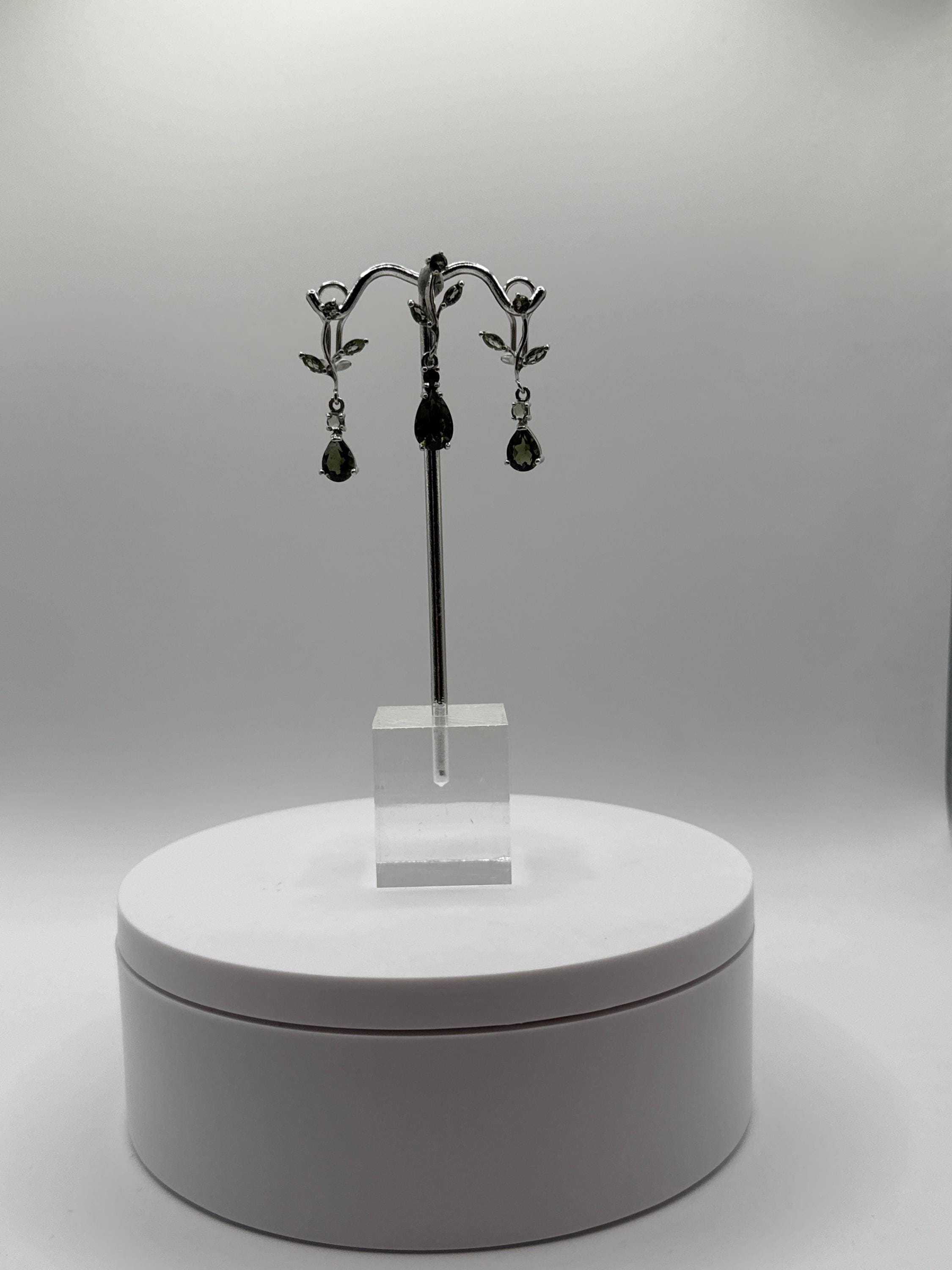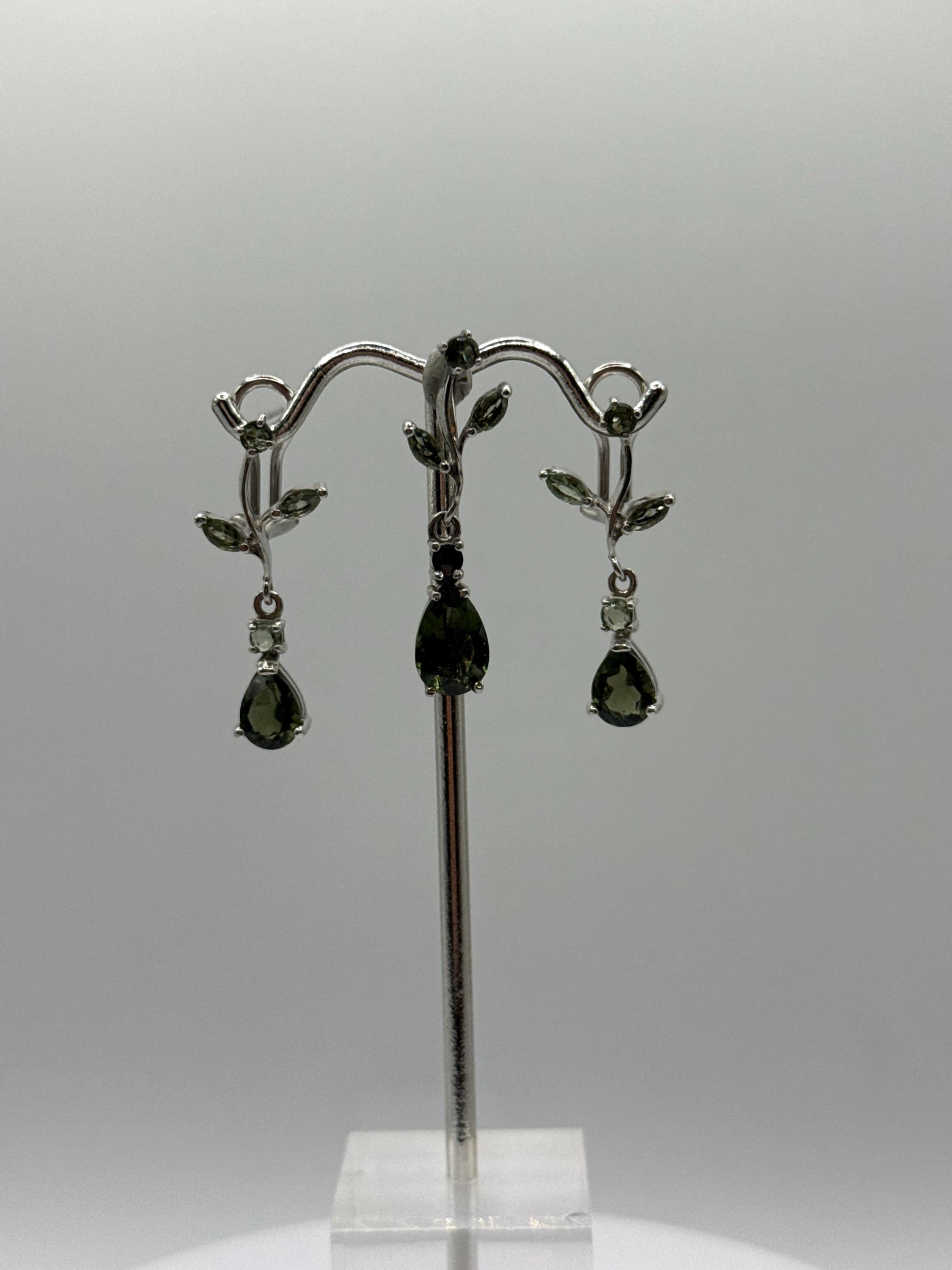 Moldavite Drop Earrings & Pendant Set - Weight 11.25 Grams