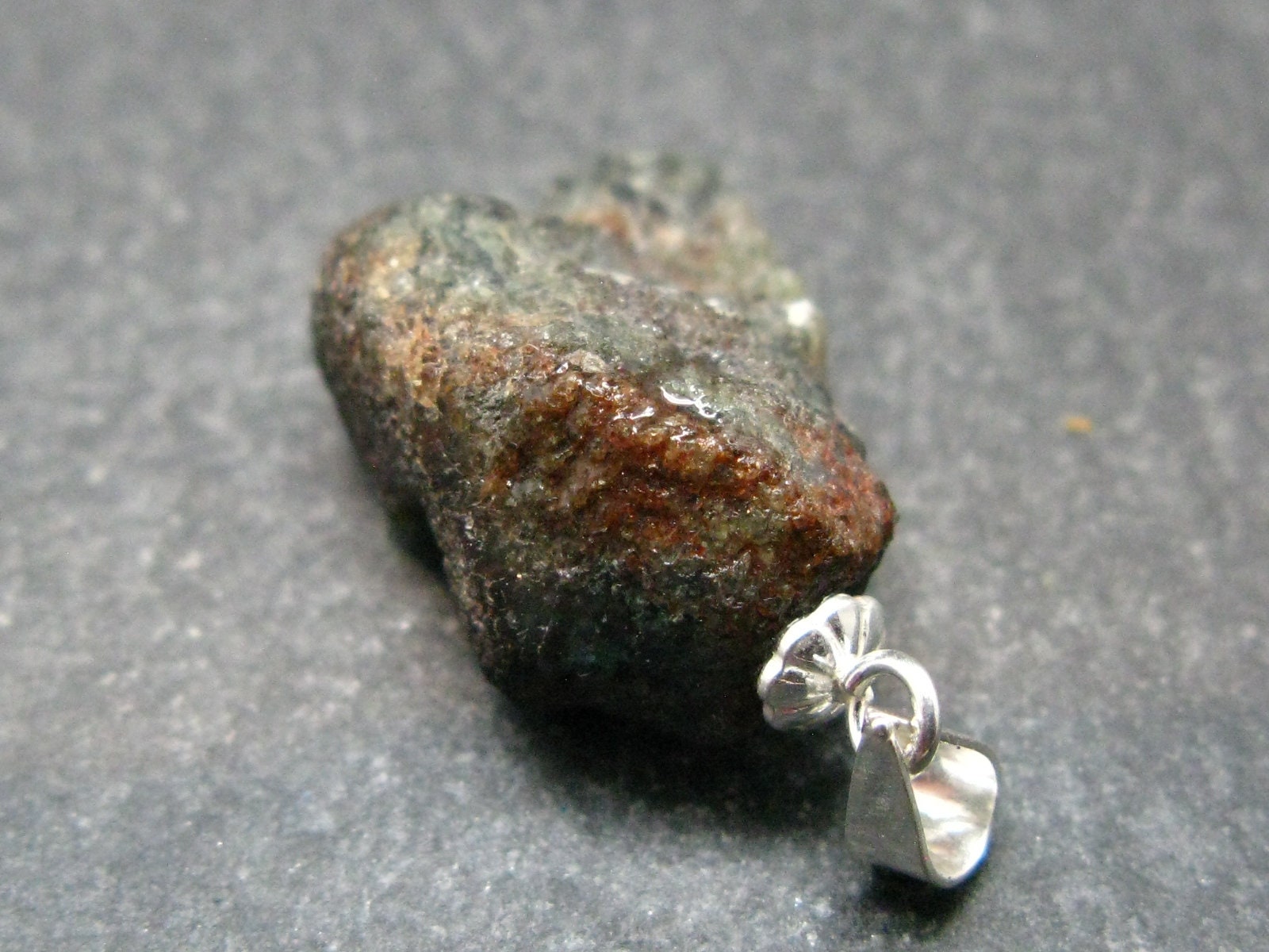 This is a very rare genuine dark green Alexandrite crystal silver pendant. It is a color changing variety of Chrysoberyl and changes color under different light wavelengths from green in daylight to dark red in incandescent light.