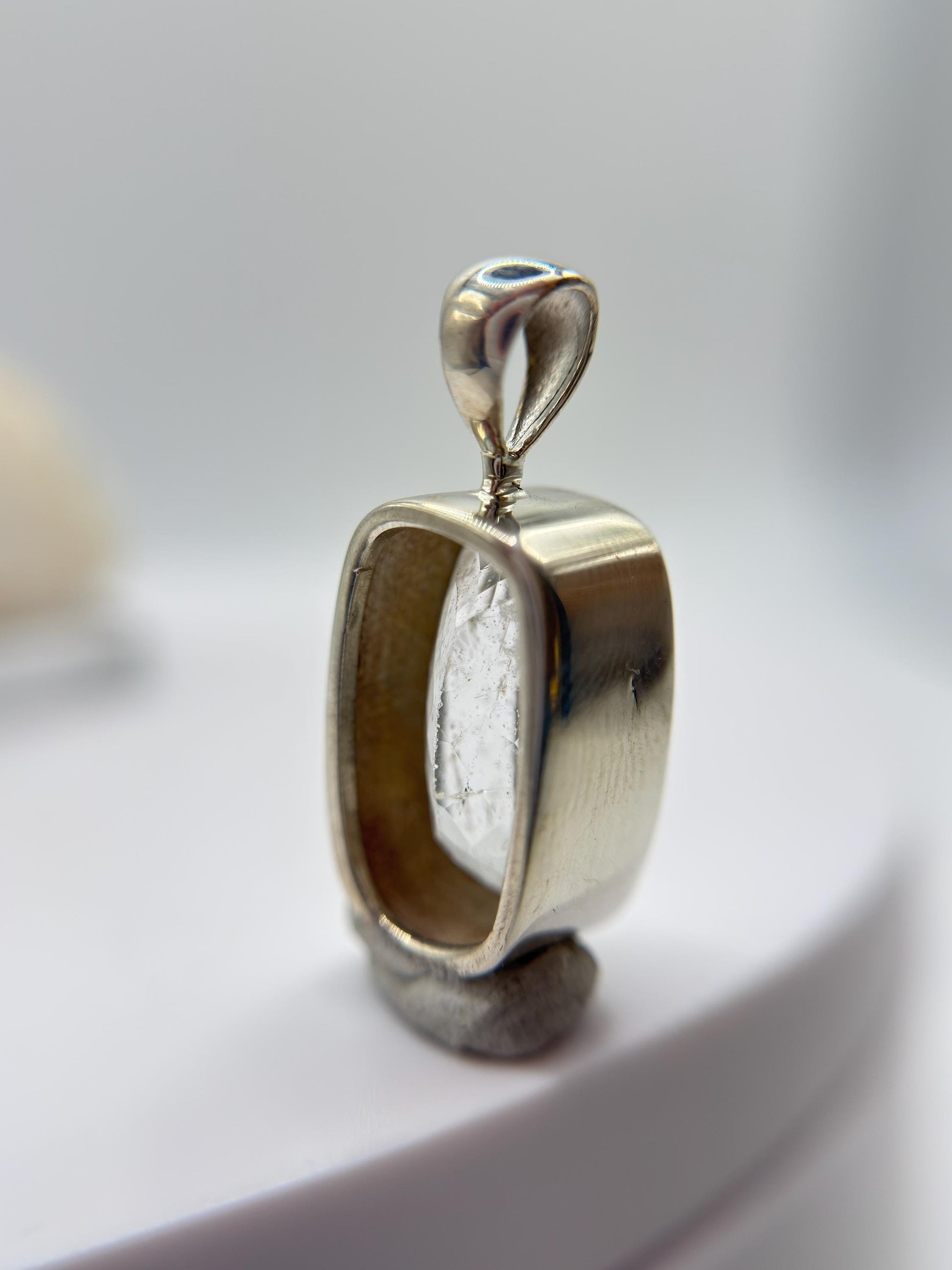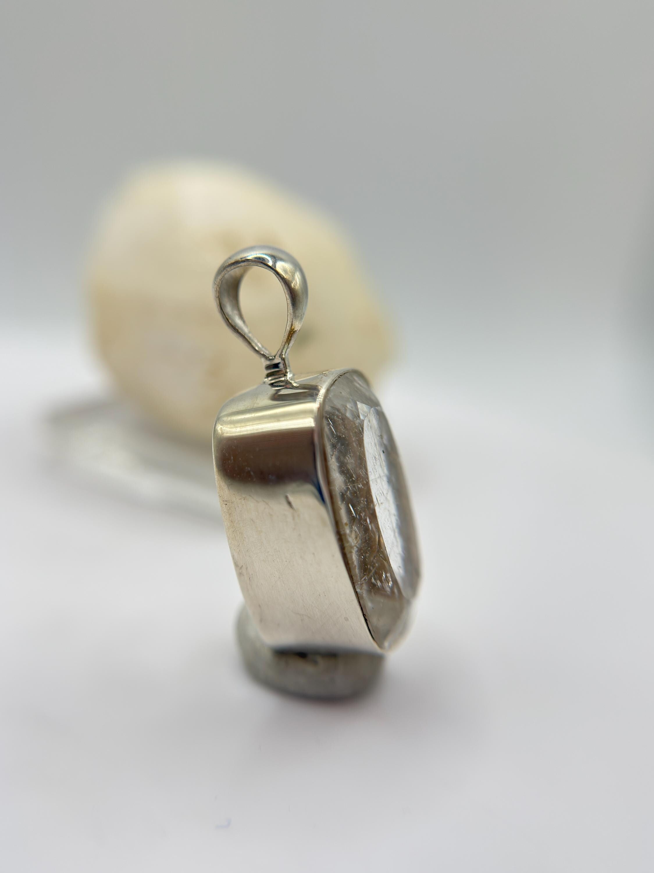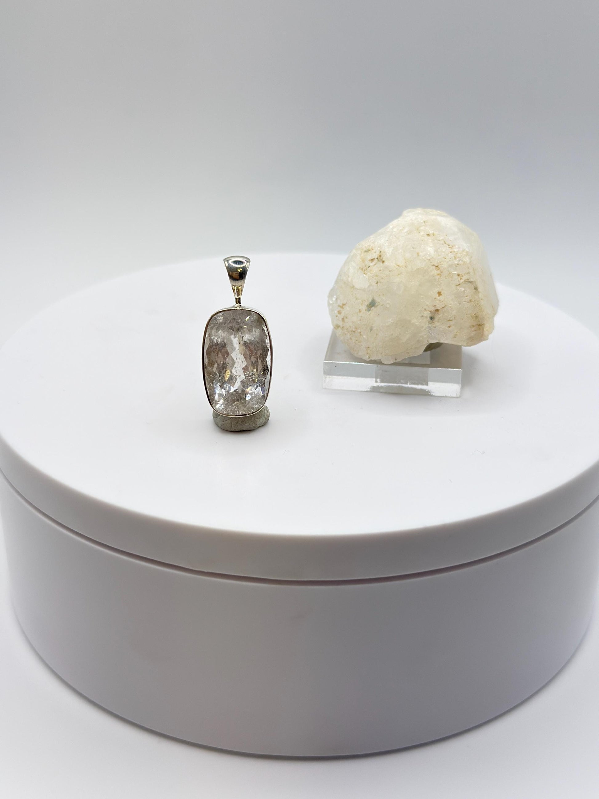 Natural Phenakite (Phenacite) Rectangular Faceted Pendant in Sterling Silver – Clear Crystal Necklace – 4.83 Grams