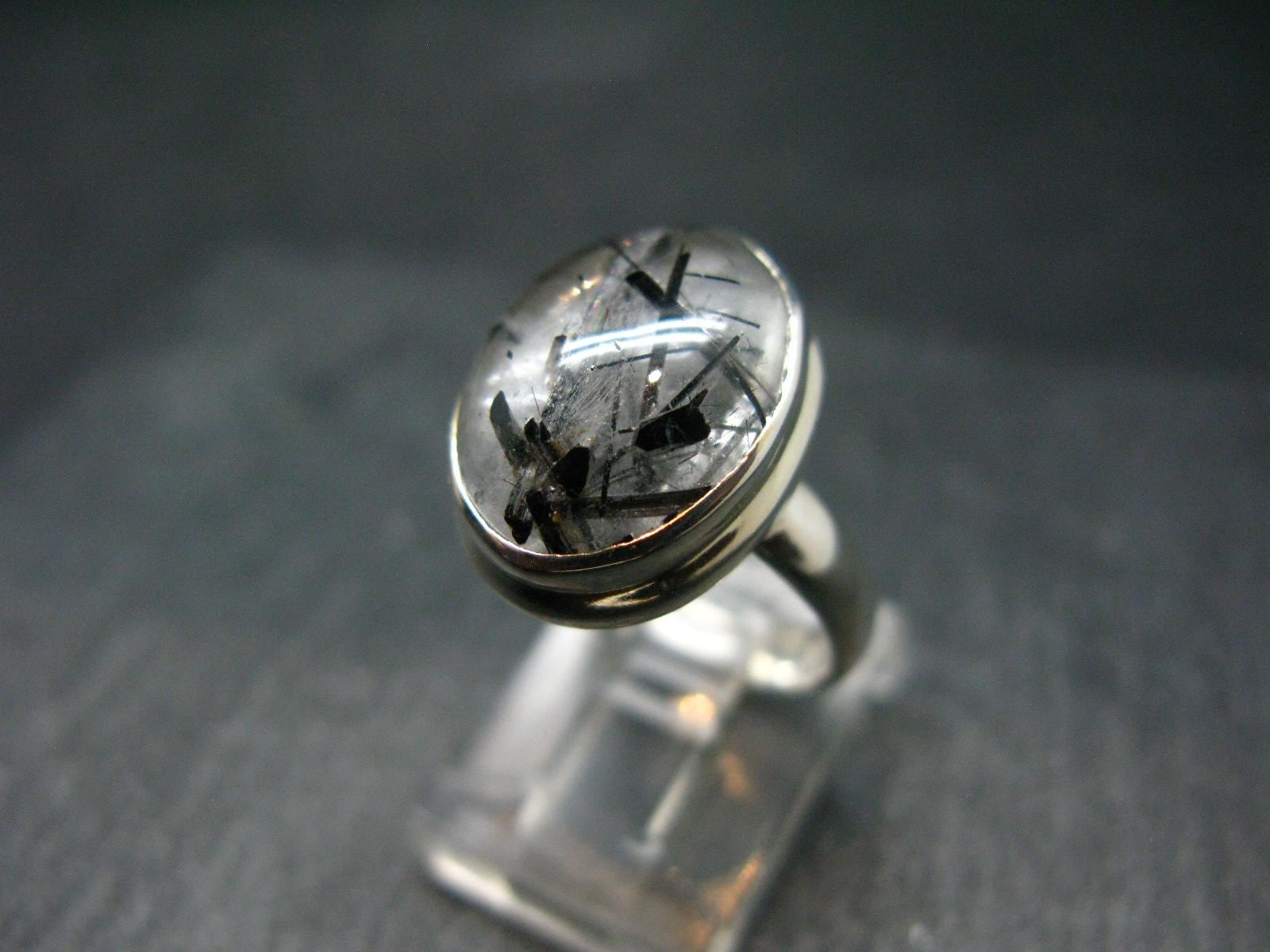Natural Tourmaline in Quartz 925 Silver Ring From Brazil - 5.38 Grams - Size 5