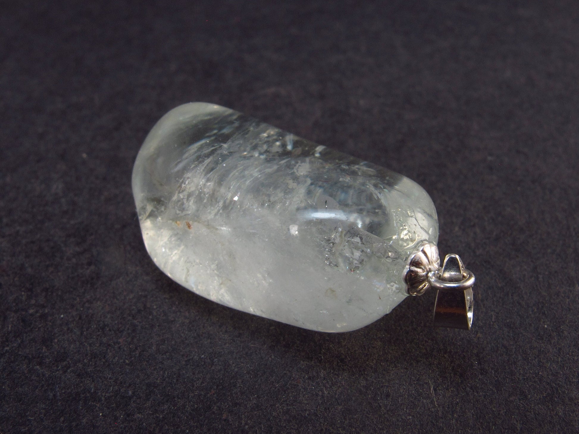 Natural unheated tumbled blue Topaz silver pendant from Brazil.