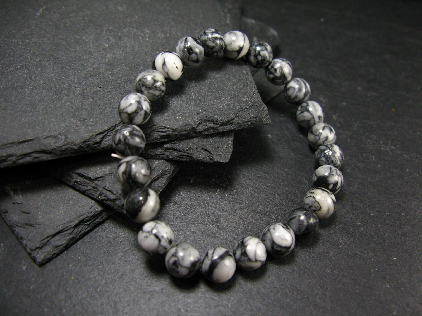 You are bidding on a genuine Pinolite (also spelled Pinolith) bracelet made with 100% natural stones.