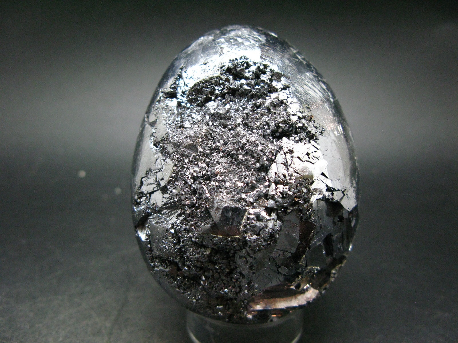 This is a very nice large and metallic lustrous Galena egg from Peru, filled with crystals. It has a bit of Sphalerite and Pyrite on one side.