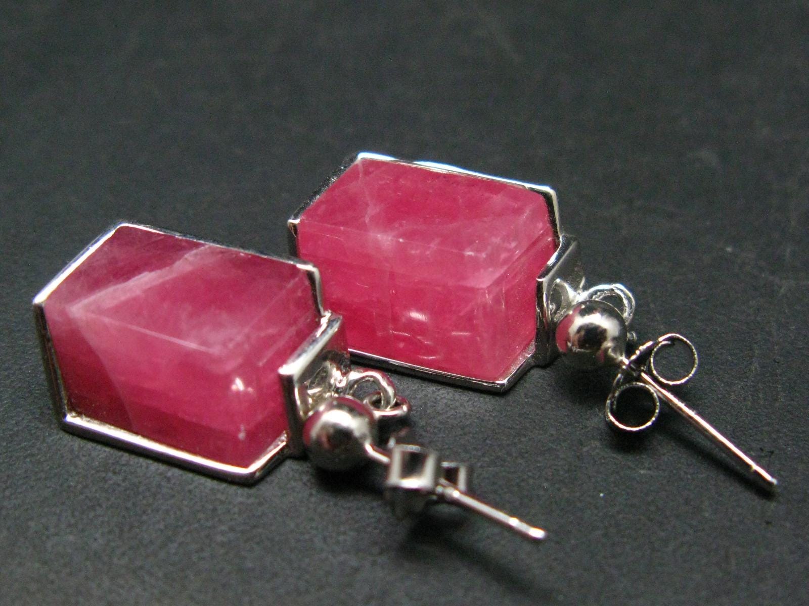These are very nice Rhodochrosite crystal sterling silver stud earrings from classic locality in Colorado. They are in great condition with some transparency.