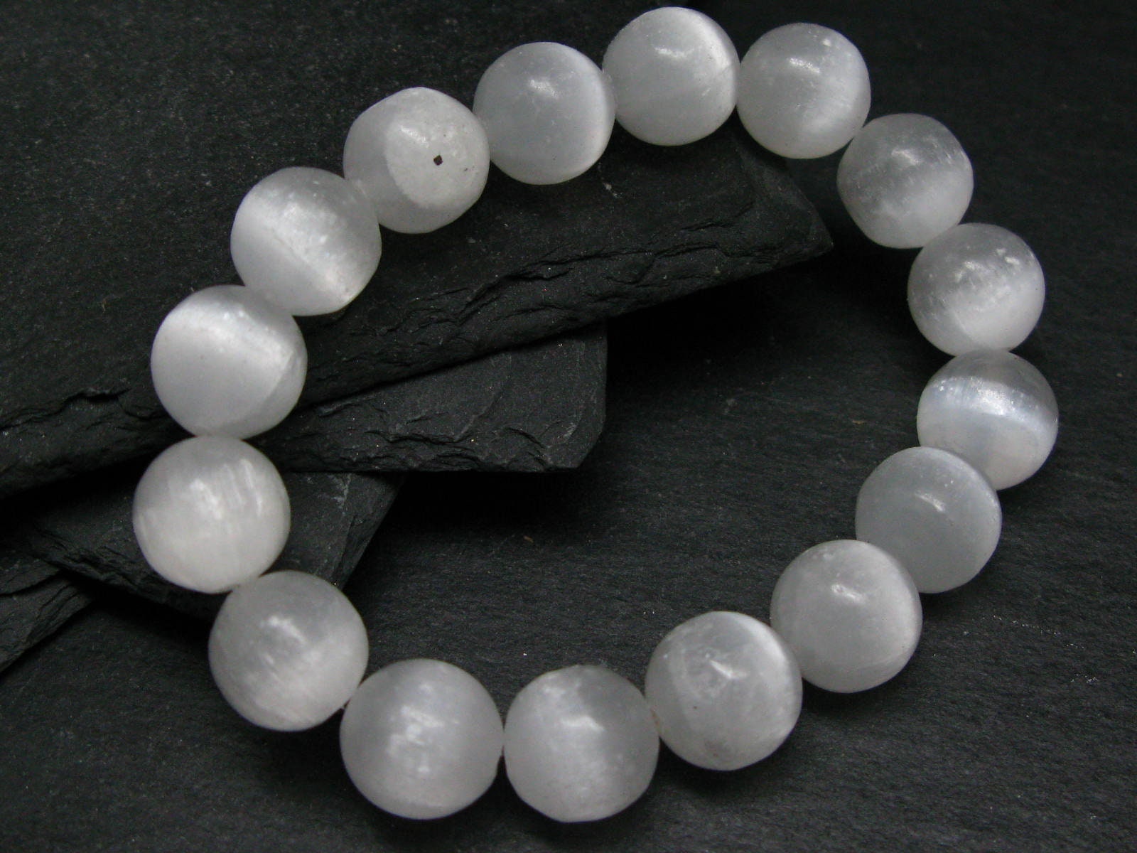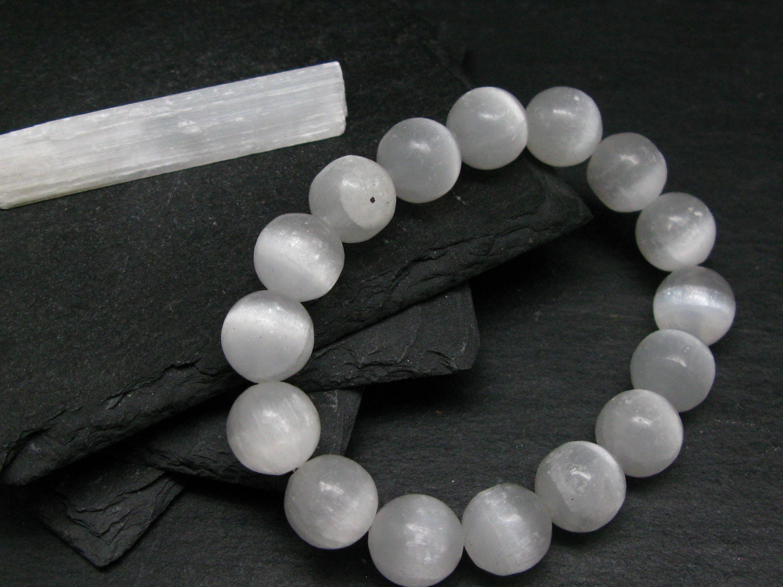 Selenite Genuine Bracelet ~ 7 Inches ~ 12mm Round Beads