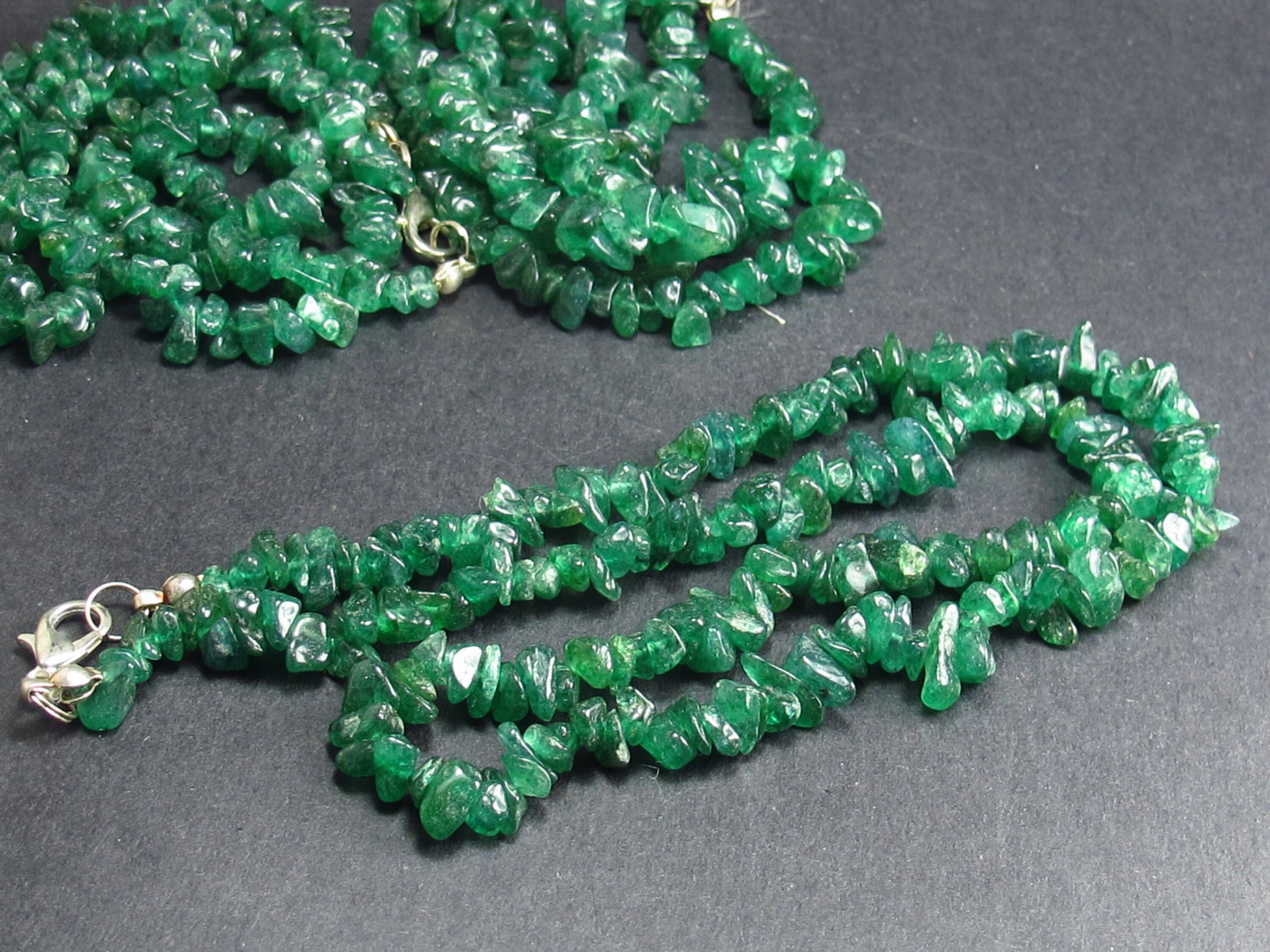 Set of Three Green Onix Gems Freeform Bead Necklace - 18" Each