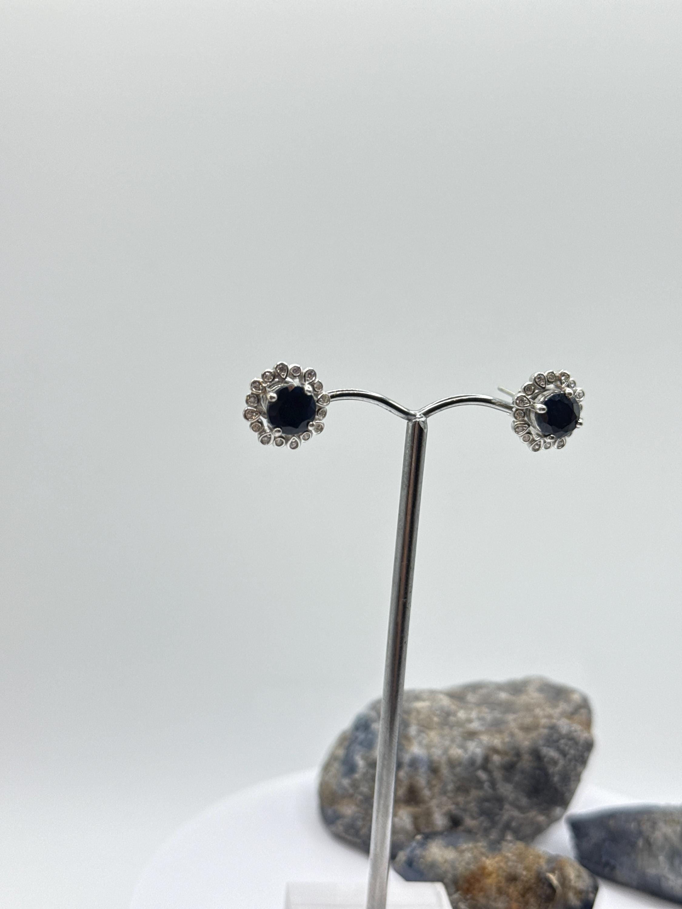 These sapphire stud earrings feature deep blue natural sapphires set in sterling silver, surrounded by a sparkling halo design that enhances their timeless beauty. Known as the stone of wisdom, protection, and inner strength, sapphire is also the traditional September birthstone, making these earrings meaningful as well as elegant. Perfect for gemstone jewelry lovers, everyday wear, or special occasions, these sapphire halo stud earrings bring sophistication and classic charm to any collection.