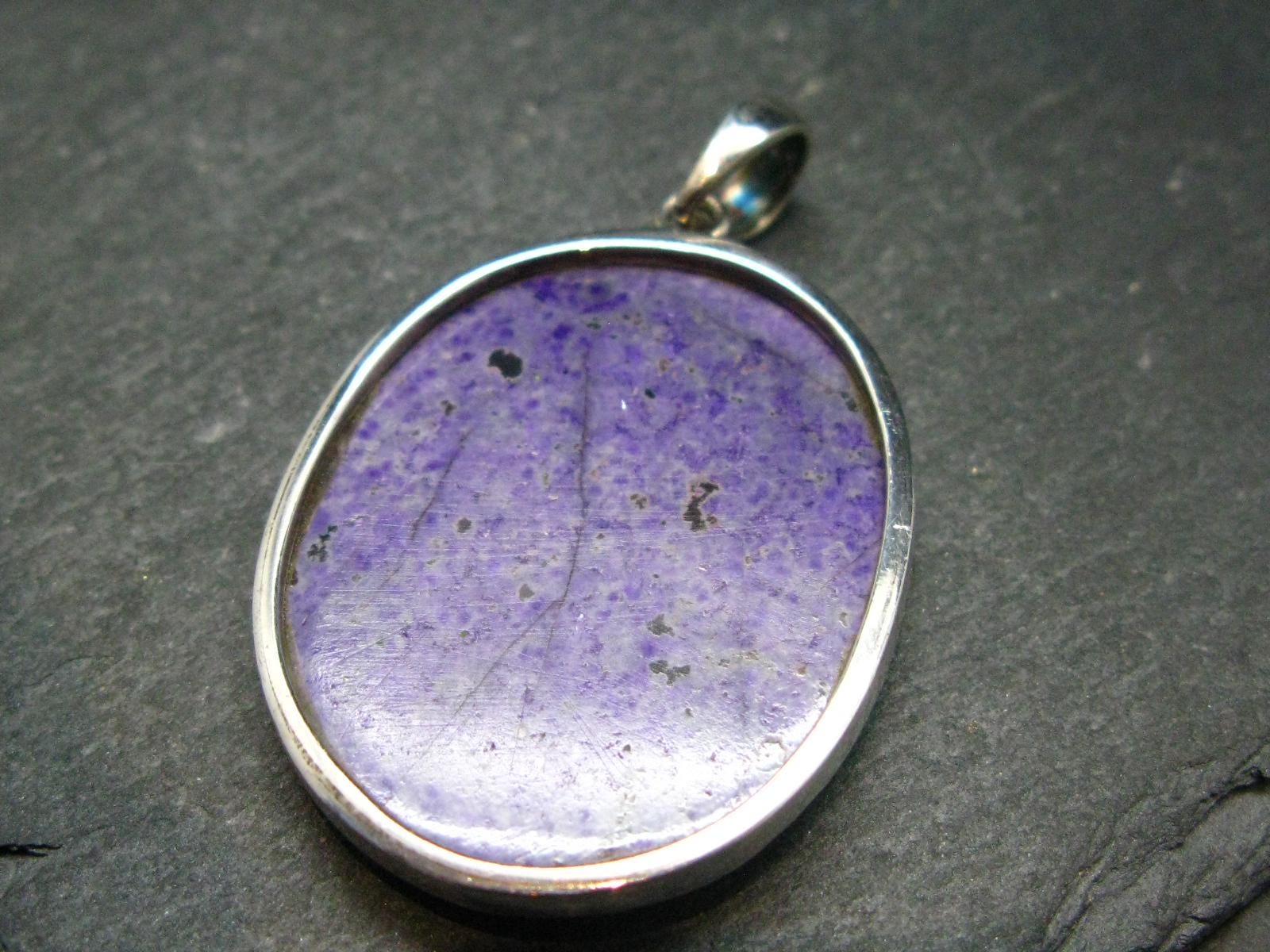 A beautiful rich purple Sugilite silver pendant from South Africa with a good color. Sugilite is 3.7 centimeters.